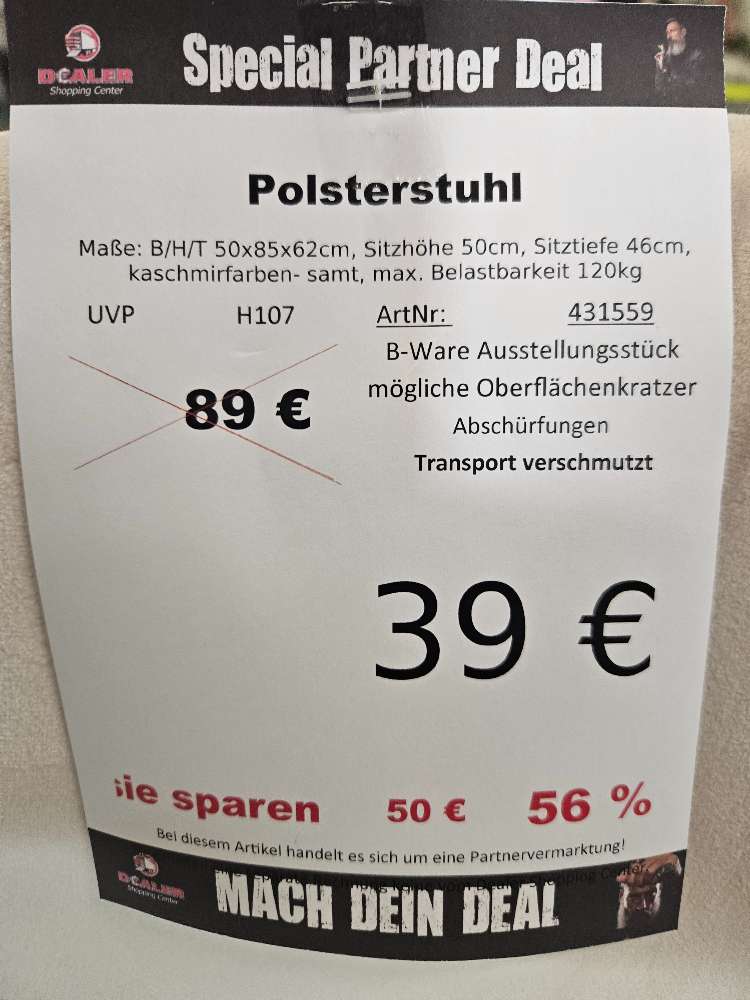 Polsterstuhl Samt Kaschmirfarbend statt 89€