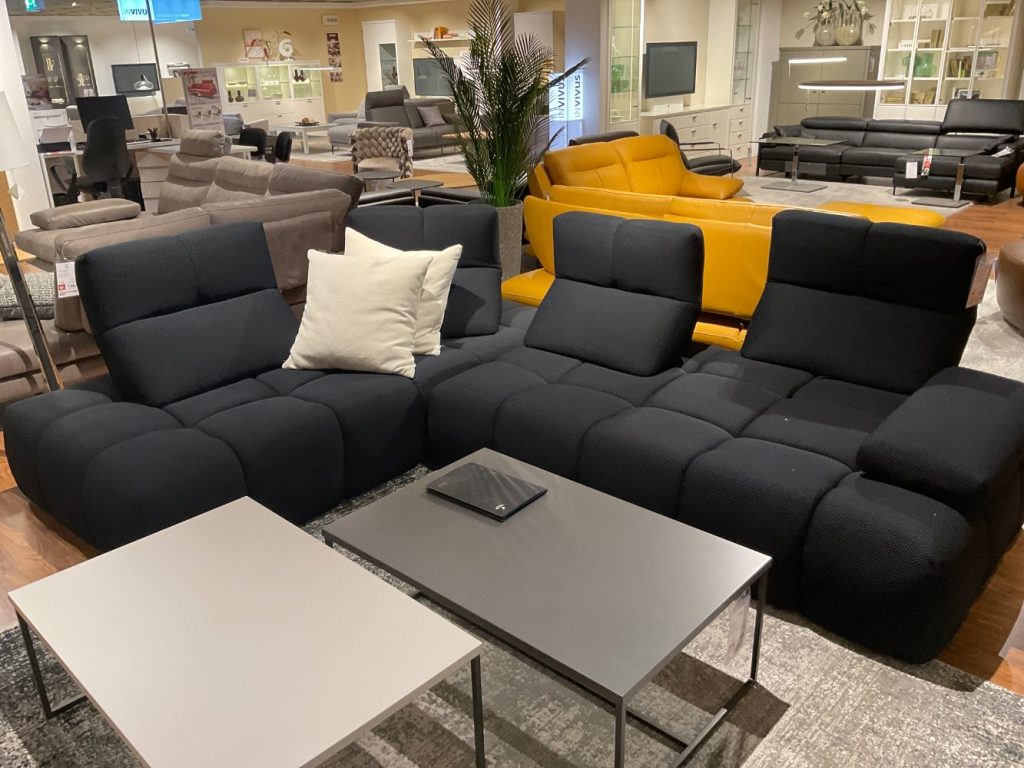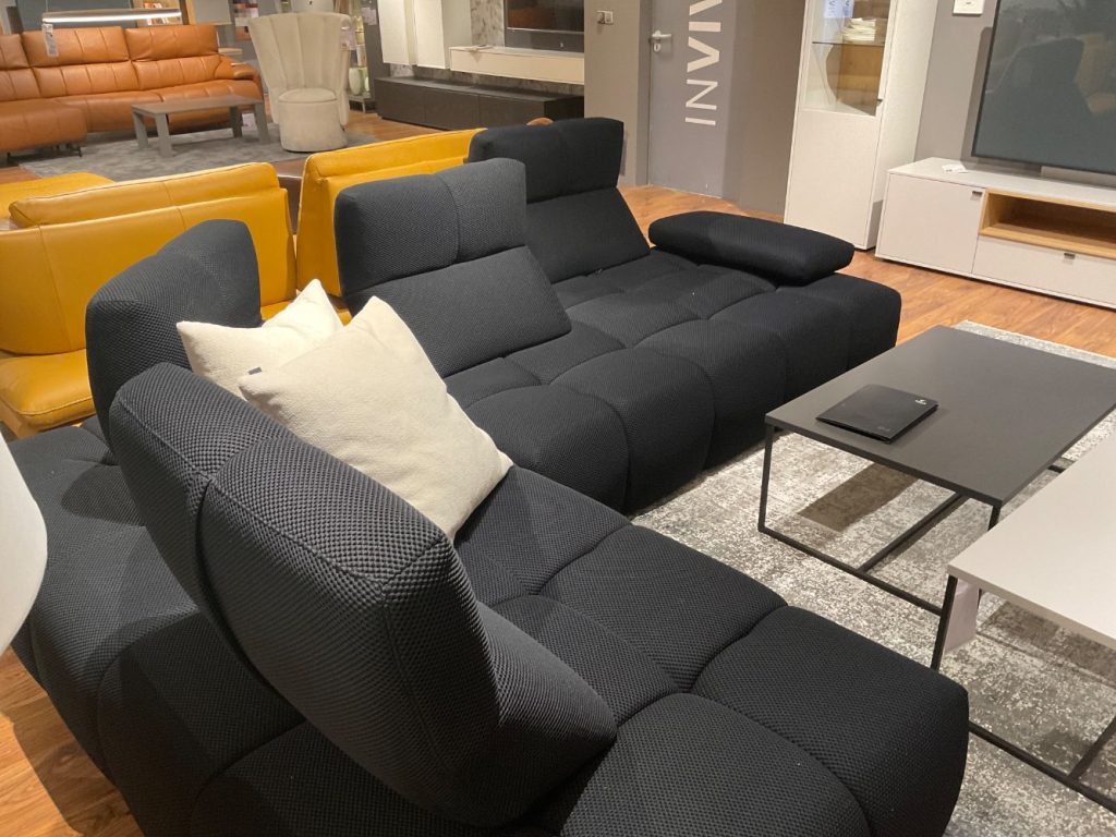 BemerkungDas Ecksofa PRM 1220 EOS verkörpert modernen Stil und hohen Komfort in perfekter Harmonie. Mit seiner großzügigen Sitzfläche von ca. 233 cm x 313 cm bietet es ausreichend Platz, um es sich mit Familie und Freunden gemütlich zu machen. Die Rete 3D Stoffoberfläche in der eleganten Farbe Nero verleiht dem Sofa eine zeitlose Ästhetik, die sich nahtlos in verschiedene Wohnstile integrieren lässt. Die Ausstellungsware präsentiert sich nicht nur optisch ansprechend, sondern auch funktional durchdacht: Die Rücken- und Sitztiefeverstellung ermöglicht es, den Sitzkomfort individuell anzupassen und optimalen Relaxgenuss zu erleben. Die Ausführung mit PU-Schaum auf Gurtunterfederung sorgt dabei für eine ausgewogene Unterstützung und Langlebigkeit. Abgerundet wird das Design von eleganten schwarzen Füßen, die dem Möbelstück einen stabilen Stand und einen modernen Touch verleihen. Egal, ob zum Entspannen nach einem langen Tag oder als zentraler Treffpunkt im Wohnzimmer, das PRM 1220 EOS überzeugt mit Stil und Funktionalität.