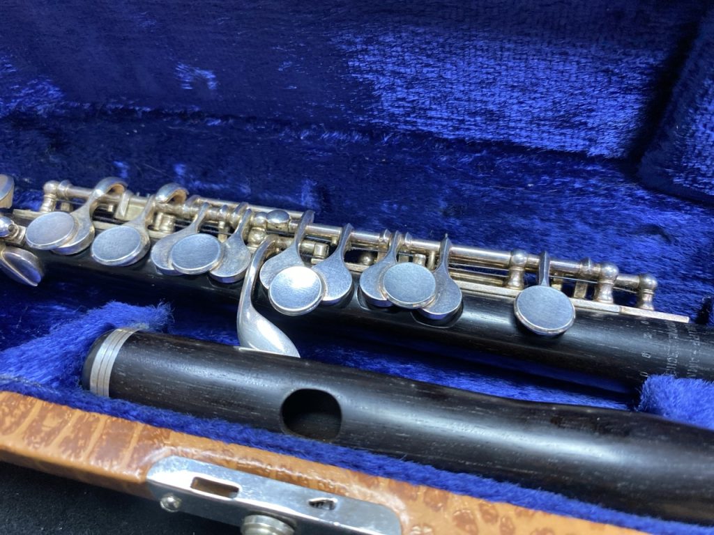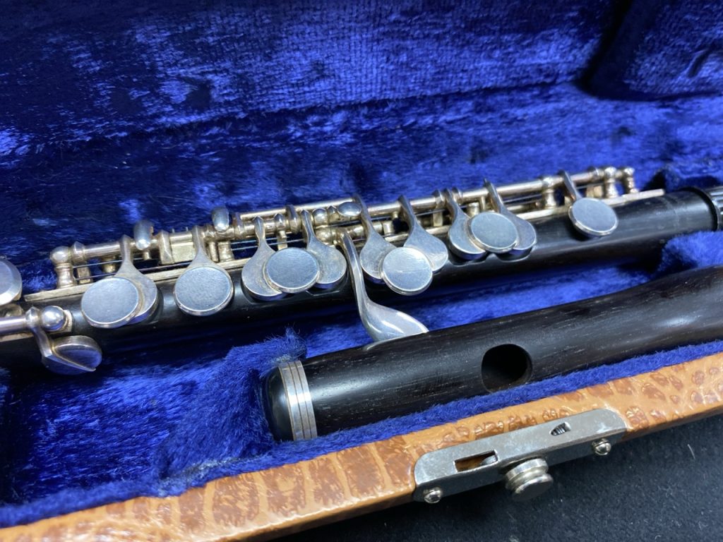 Piccoloflöte, Vollholz. Neupolsterung notwendig.