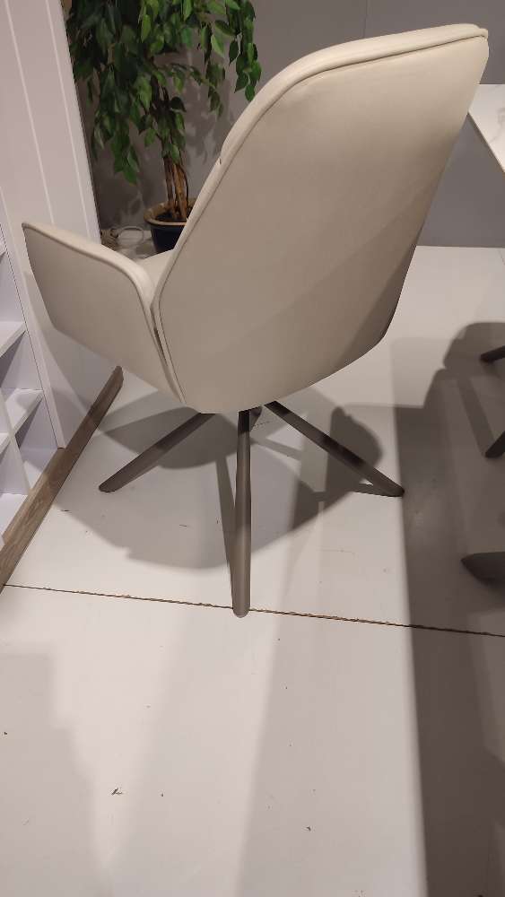 Das taupefarbene Gestell rundet das harmonische Gesamtbild stilvoll ab und verleiht dem Stuhl eine moderne, edle Note. Ein besonderes Highlight ist die 180°-Drehfunktion, die maximale Flexibilität im Alltag ermöglicht und zusätzlichen Komfort bietet.