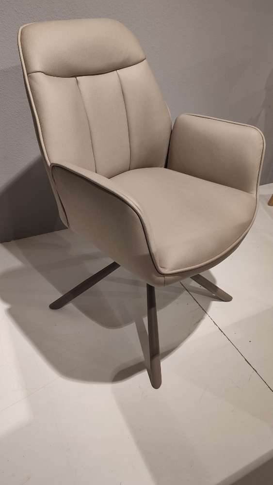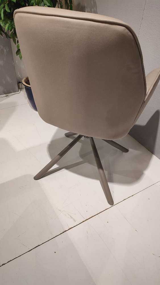 Das taupefarbene Gestell rundet das harmonische Gesamtbild stilvoll ab und verleiht dem Stuhl eine elegante, moderne Note. Ein besonderes Highlight ist die 180°-Drehfunktion, die maximale Flexibilität im Alltag ermöglicht und für zusätzlichen Komfort sorgt.