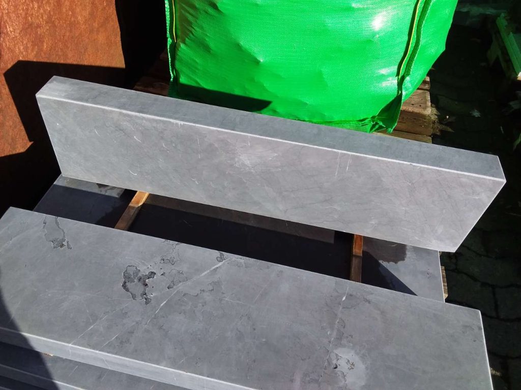 Blaustein in der Ausführung allseits geschliffen, Kanten gefast