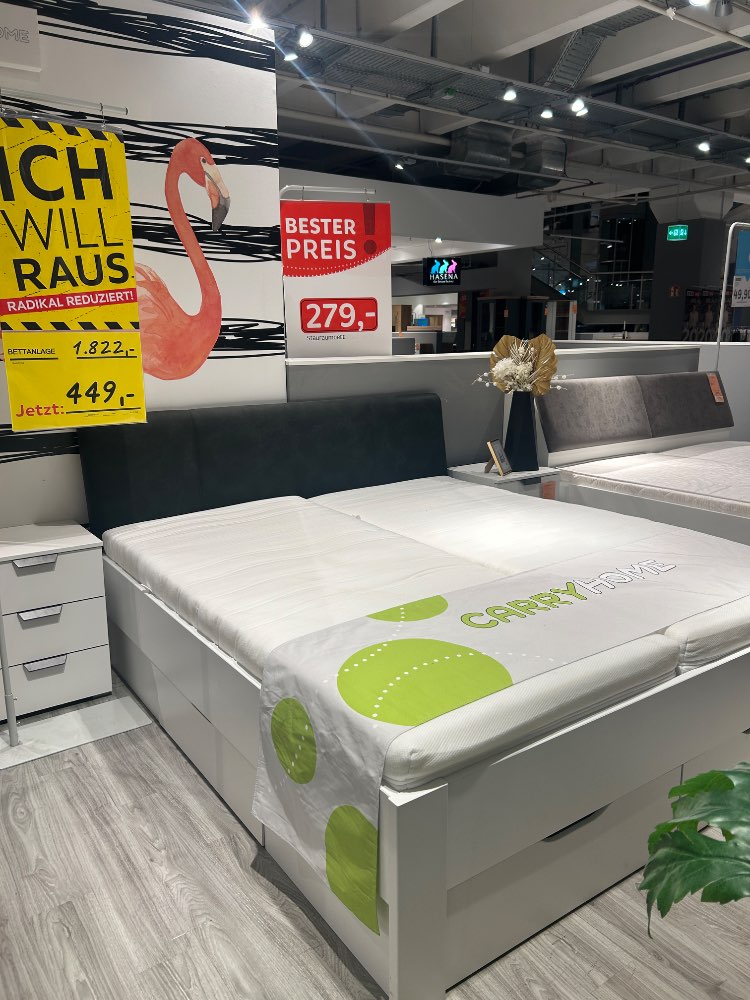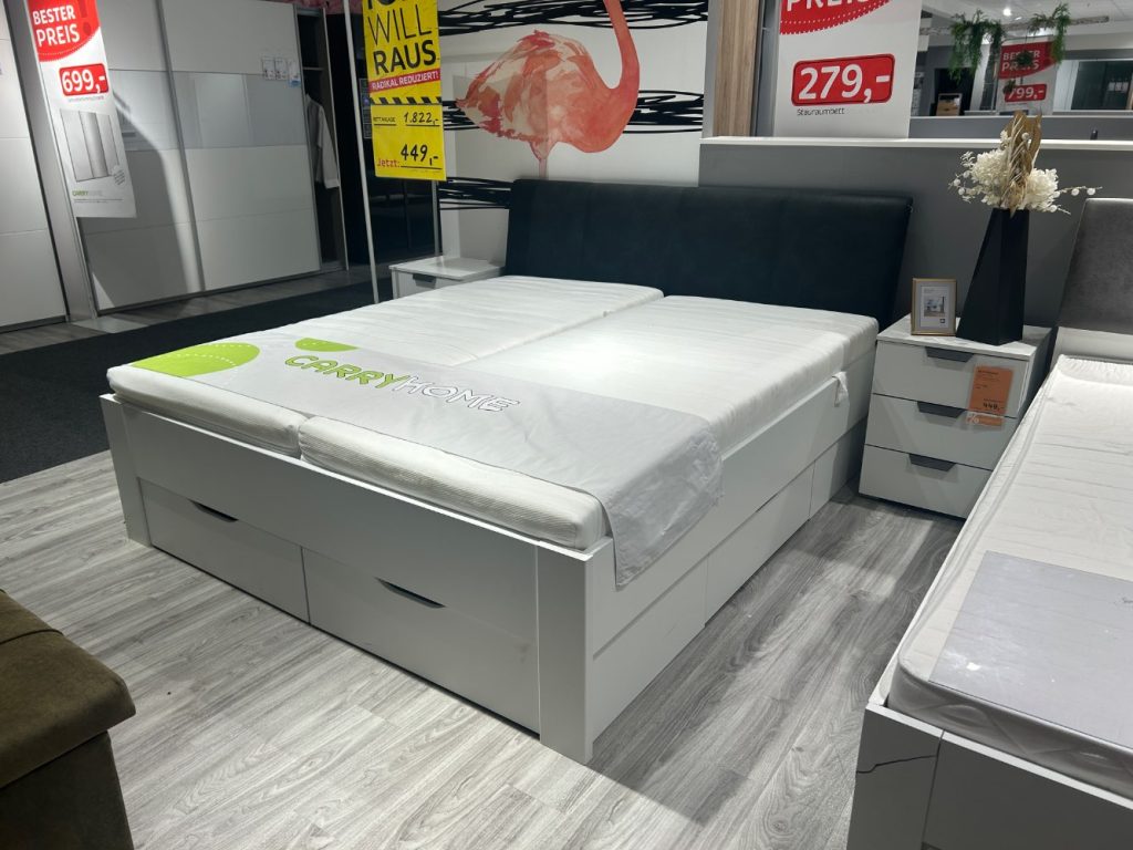 Bettanlage enthält 2x Nachtische und Bettkästen