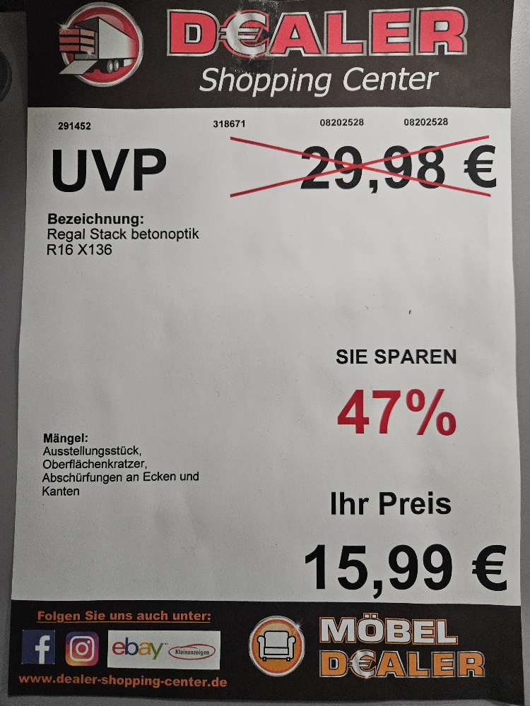 Regal in Betonoptik statt 29,98€