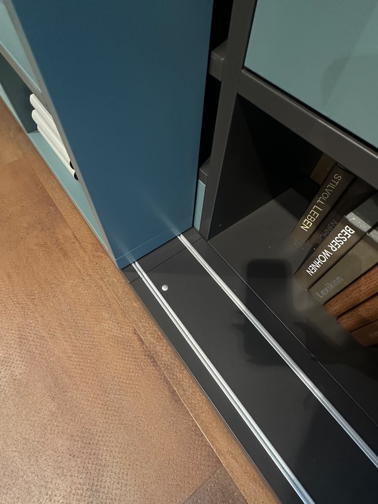 BemerkungMaße ca.B/H/T: 392x251x55 cm, Regal in Lack graphit und Schieberegal TV-Halter in Lack Ozean, ohne Dekoration!