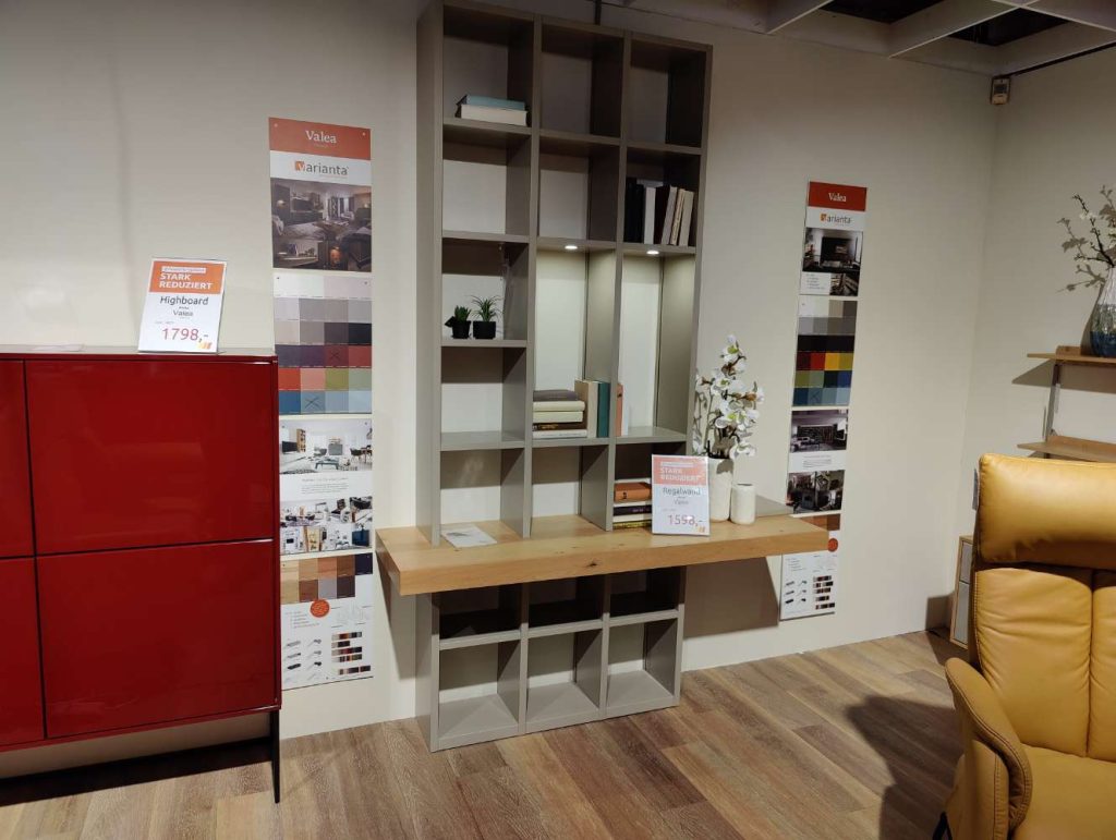 Als Ausstellungsware bietet das Bücherregal nicht nur reichlich Platz für Ihre Lieblingsbücher, sondern beeindruckt auch mit einer integrierten Schreibplatte. Diese praktische Ergänzung hebt das Möbelstück von herkömmlichen Bücherregalen ab und bietet einen komfortablen Ort, um sich Notizen zu machen oder zu arbeiten. Die integrierte Beleuchtung setzt Ihre Buchsammlung auf ansprechende Weise in Szene und sorgt für eine gemütliche Lesestimmung. Gefertigt mit Präzision und Liebe zum Detail in Deutschland, verkörpert Valea die exzellente Handwerkskunst, für die RMW bekannt ist.
