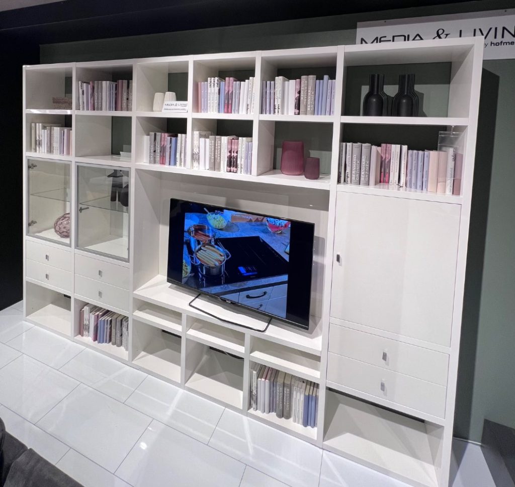 BemerkungEntdecken Sie mit der EF BeFlex Regalwandkombination von FIF MÖBEL eine stilvolle und funktionale Ergänzung für Ihr Zuhause. Diese moderne Regalwand besticht durch ihre elegante Weiß Hochglanz-Oberfläche, die jedem Raum ein helles und zeitgemäßes Ambiente verleiht. Gefertigt aus hochwertigem Holz und beschichtet mit einer Hochglanz-Materialbeschichtung, vereint sie Langlebigkeit mit einem ansprechenden Design. Mit den großzügigen Maßen von L33xB318xH221 bietet die EF BeFlex nicht nur viel Stauraum, sondern wird auch zum beeindruckenden Blickfang in jedem Raum. Diese Ausstellungware präsentiert sich in einem ausgezeichneten Zustand und verleiht Ihrem Interieur subtile Eleganz. Egal, ob Sie Bücher, Dekorationsartikel oder persönliche Gegenstände stilvoll präsentieren möchten, diese Regalwandkombination bietet die perfekte Lösung. Entscheiden Sie sich für die EF BeFlex und meistern Sie das Zusammenspiel von Funktionalität und Ästhetik in Ihrem Zuhause mit Leichtigkeit und Stil.