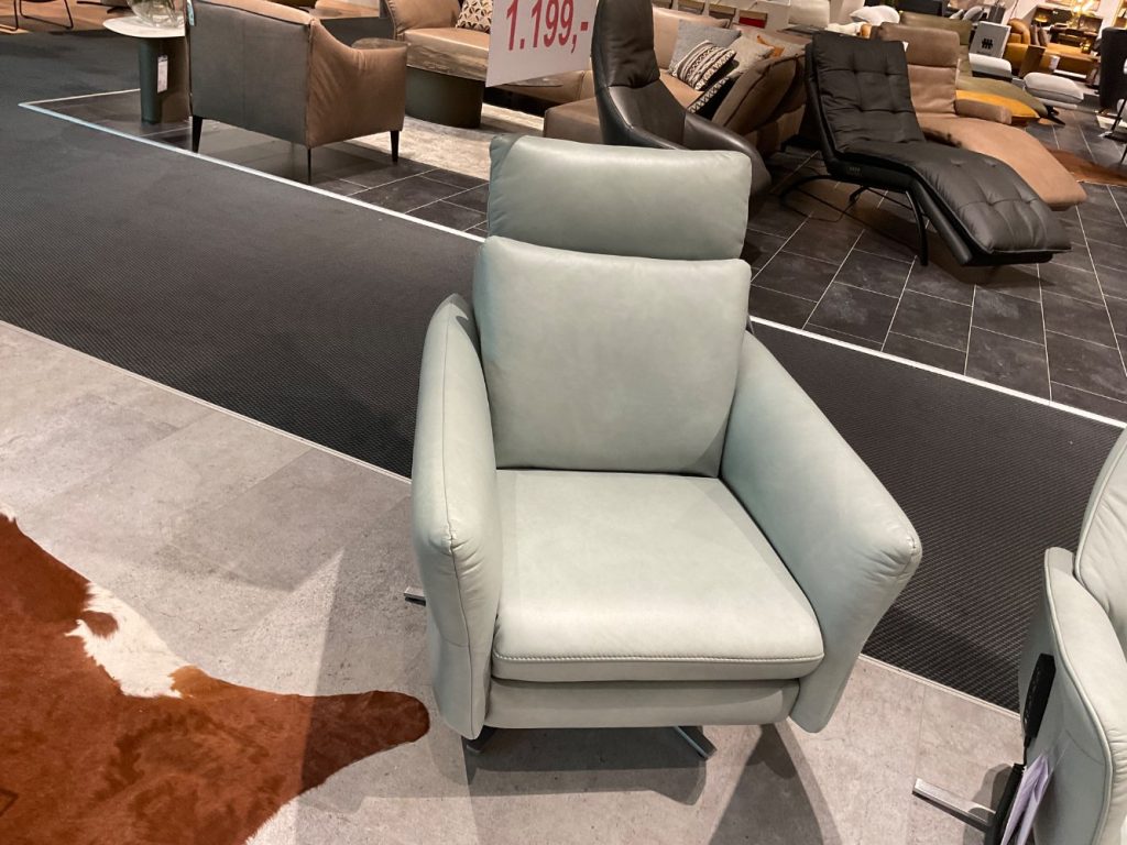 BemerkungDer HIMOLLA Relaxsessel 7168 Cumurex in der eleganten Farbe Jade (bleu) ist die perfekte Ergänzung für jedes stilvolle Wohnzimmer. Gefertigt aus hochwertigem Echtleder besticht dieses Ausstellungsstück durch seine außergewöhnlich glatte Oberfläche, die ein luxuriöses Gefühl und zeitlose Ästhetik vermittelt. Ein besonderes Highlight dieses Sessels ist die motorisch verstellbare Kopf-, Rücken- und Fußfunktion, die ein unvergleichliches Maß