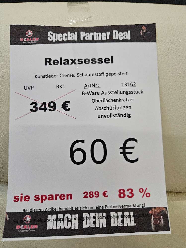 Relaxsessel Kunstleder Creme ( defekt) statt 349€