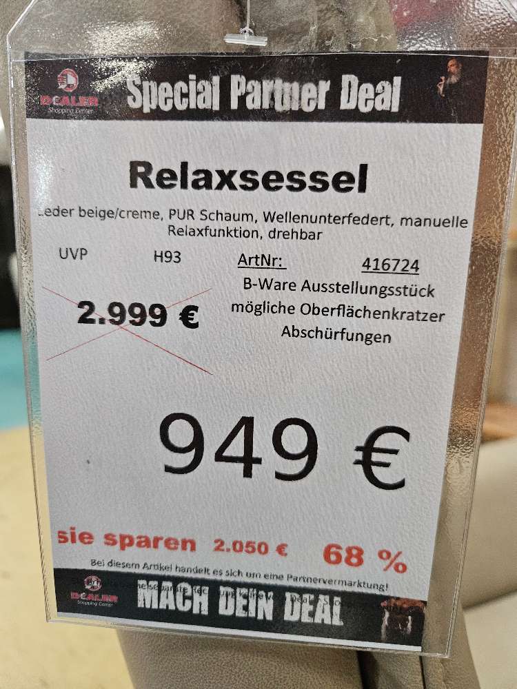 Relaxsessel Leder Beige Creme wellenunterfedert statt 2999€