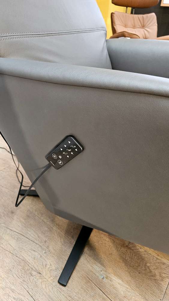 AusführungBezug: Leder Paloma -094 Fb. rock -80 Sitzpolsterung: leger Sitzhöhe: ca. 51 cm Sitztiefe: ca. 55 cm Gestell: Metall Matt Black -45 inkl. elektrische Relaxfunktionen Funktionen: Plus System / 360° drehbar B/H/T ca. 75x117x94 cm