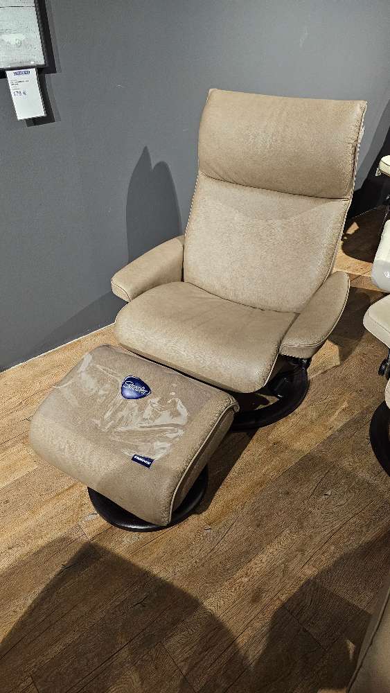 BemerkungDer STRESSLESS Aura L 1344015 Relaxsessel in der eleganten Farbe Mole bringt skandinavischen Komfort und zeitloses Design in Ihr Zuhause. Aus hochwertigem Echtleder gefertigt, bietet dieser Sessel ein luxuriöses Sitzerlebnis, das durch die legere Sitzpolsterung noch verstärkt wird. Mit einer Sitzhöhe von ca. 47 cm und einer Sitztiefe von ca. 51 cm ist der Komfort auf Ihre Bedürfnisse angepasst. Der Sessel ist mit dem innovativen Plus™ System ausgestattet, das sich optimal an die Bewegungen Ihres Körpers anpasst und so eine ideale Unterstützung bietet – sei es für ein Nickerchen oder konzentriertes Lesen. Dank der 360° Drehfunktion bleibt der Sessel jederzeit flexibel und passt sich Ihren Raumverhältnissen an. Das Classic Gestell aus Buche, wenge gebeizt, rundet das edle Erscheinungsbild ab. Der dazugehörige Hocker, mit Maßen von ca. 54x47x46 cm, ergänzt den stilvollen Look und bietet zusätzlichen Komfort für Ihre Beine. Als Ausstellungsware bietet der STRESSLESS Aura L Sessel eine hervorragende Möglichkeit, Hochwertigkeit und Exklusivität zu einem unschlagbaren Preis zu genießen.