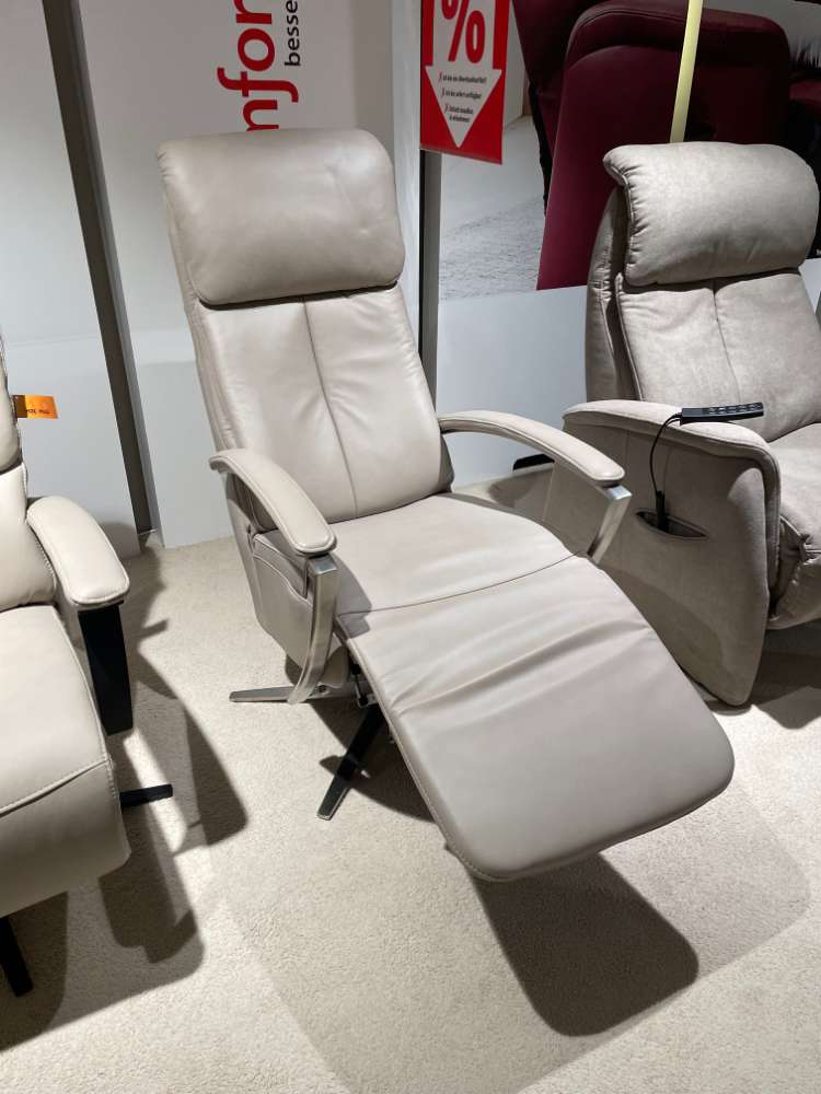 Bemerkung Entdecken Sie luxuriösen Komfort mit dem Relaxsessel von HUKLA, der speziell dafür konzipiert wurde, Ihnen entspannende Momente zu bieten. Der in elegantem Beige gehaltene Echtlederbezug verleiht diesem Sessel seine hochwertige und stilvolle Optik, die sich nahtlos in jede Wohnlandschaft einfügt. Durch die manuelle Relaxfunktion und das verstellbare Kopfpolster können Sie Ihre individuelle bevorzugte Sitz- oder Liegeposition finden und genießen. Die großzügige Rückenhöhe von ca. 123 cm und eine beeindruckende Liegelänge von ca. 191 cm bieten ausreichend Platz zum Entspannen und lassen Sie den Alltagsstress vergessen. Ein besonderer Blickfang ist das Drehkreuz mit einem eleganten Sternfuß aus Edelstahl, das nicht nur Stabilität und Sicherheit bietet, sondern auch das moderne Design des Sessels unterstreicht. Der HUKLA Relaxsessel ist mehr als nur Möbel – er ist eine Einladung zum Verweilen und Wohlfühlen.