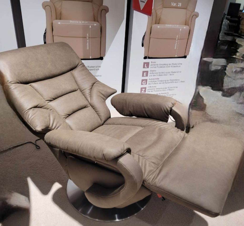 BemerkungErleben Sie ultimativen Komfort mit dem Relaxsessel von STEINPOL POLSTERIA, der durch seine geschmackvolle Mikrofaserausführung in elegantem Olive besticht. Dieser Ausstellungsartikel vereint moderne Ästhetik mit funktionaler Entspannung und passt perfekt in jedes Wohnzimmer. Mit einem Stellmaß von 80x114x88 cm und einer Sitztiefe von 53 cm bietet er großzügigen Platz und lädt zum Verweilen ein. Die manuelle Verstellfunktion ermöglicht es Ihnen, die Sitzposition individuell anzupassen, sodass Sie sich optimal entspannen können. Ein robuster Drehteller aus Edelstahl-Metall verleiht dem Sessel nicht nur Stabilität, sondern auch eine zeitlose Eleganz. Dieser Relaxsessel ist die perfekte Ergänzung für jedes Zuhause, das Luxus und Komfort zu schätzen weiß.