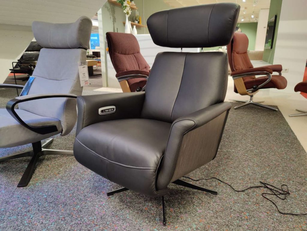 BemerkungDieser elegante Relaxsessel kombiniert zeitlose Ästhetik mit moderner Funktionalität. Die Sitzschale aus hochwertigem Holz verleiht dem Sessel einen natürlichen Charme, während das schwarze Glattleder aus Echtleder für eine stilvolle und gleichzeitig robuste Oberfläche sorgt. Das Leder ist nicht nur strapazierfähig, sondern auch pflegeleicht, was den Sessel zu einem langlebigen Begleiter im Alltag macht. Der Sessel punktet vor allem mit seiner 2-motorischen Verstellung, die es Ihnen ermöglicht, die Rückenlehne und das Fußteil unabhängig voneinander einzustellen und so individuellen Komfort zu erleben. Der schwarze Sternfuß sorgt für Stabilität und ein modernes Erscheinungsbild. Zusätzlich ist der Sessel mit einem praktischen USB-Port ausgestattet, der das Laden Ihrer Geräte erleichtert. Ein wahres Highlight für jeden Wohnraum, das sowohl durch Funktion als auch Design überzeugt.