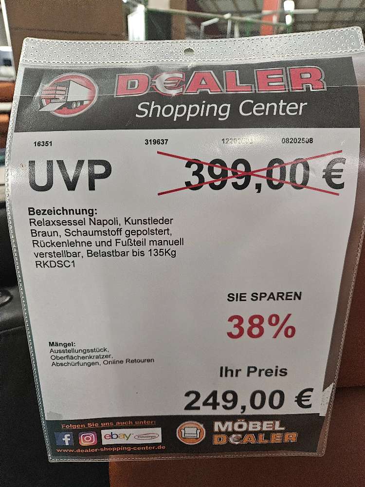 Relaxsessel Napoli Kunstleder Braun statt 399€