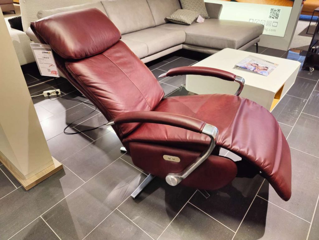 BemerkungDer Relaxsessel Modell 32632 von SCHILLIG, in einem eleganten burgundy Farbton, setzt in jedem Raum Akzente. Hergestellt aus hochwertigem Echtleder beeindruckt er durch die glatte Textur des Materials, das nicht nur für eine ansprechende Optik sorgt, sondern auch ein angenehmes Sitzgefühl bietet. Als Ausstellungsware bietet dieser Sessel nicht nur optische Vorzüge, sondern überzeugt durch außergewöhnliche Handwerkskunst, die sich in seiner Herkunft widerspiegelt: Made in Germany steht für Langlebigkeit und Qualität.