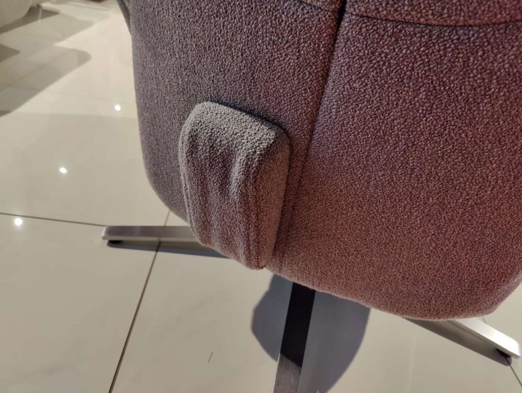 Der Sessel misst 72 x 111 x 84 cm und ist als Ausstellungsware verfügbar. Er verkörpert eine perfekte Symbiose aus Funktionalität und stilvoller Ästhetik, die den Anspruch auf modernen Komfort bewusst betont.