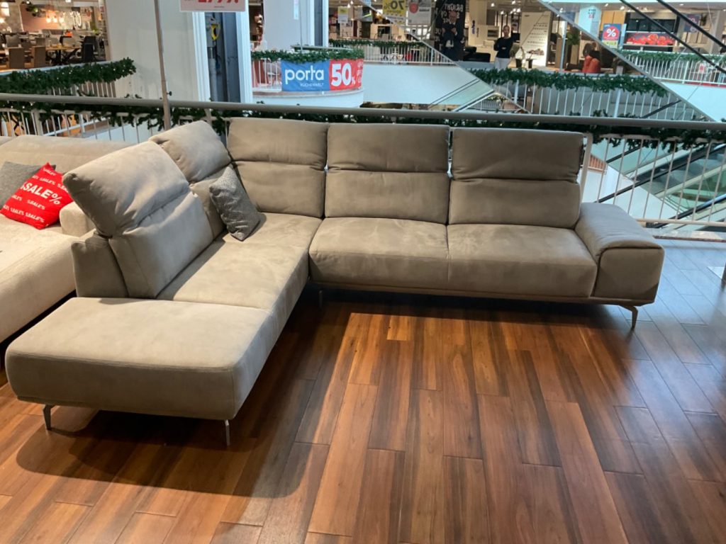 Rundecke Stoffbezug grey Ecksofa mit Ho li+2-Sitzer AT rechts Sitz Federkern Rücken echt bezogen ca. 237x300 cm