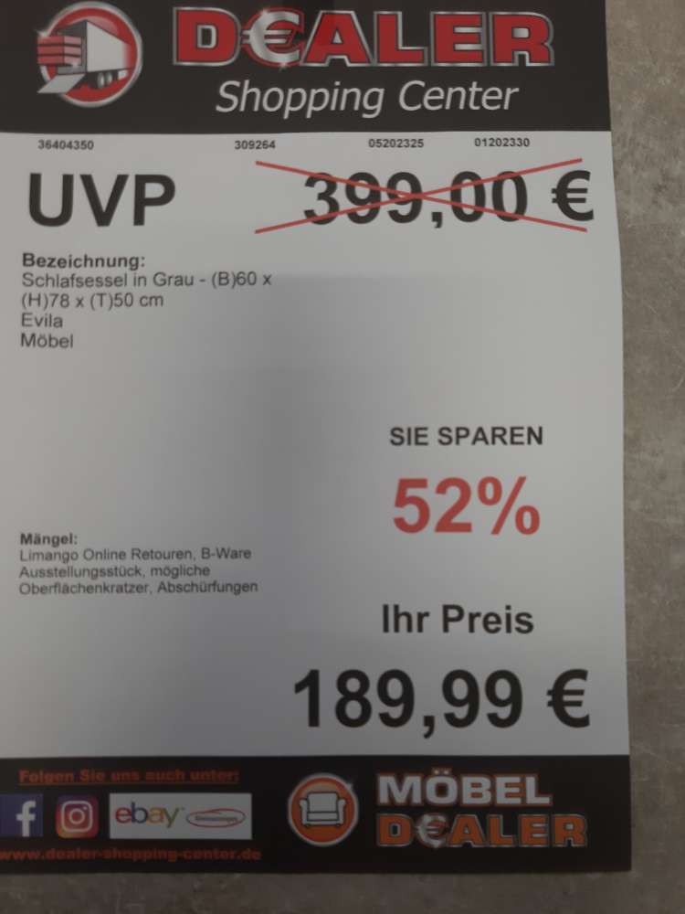 Bemerkung Dieser Artikel ist bereits den Rabatt der Black Week im Preis reduziert dargestellt! Mach deinen Deal! Hierbei handelt es sich um ein Angebot vom Dealer Shopping Center! Standort des Artikels ist Zeitz Kretzschau. Details wie technische Daten oder Schäden entnehmen Sie dem Bild mit Preis. BEZAHLUNG:  Bargeld, EC-Kartenzahlung, Kreditkarte oder 0% Finanzierung mit Consors Bank. RESERVIERUNG: Bei einem längeren Anfahrtsweg und vorheriger Absprache mit dem Verkäufer vor Ort ist eine Reservierung, für die Dauer der Fahrt -maximal  jedoch für 4 Stunden- möglich. Von Sonderanfragen bitten wir abzusehen. WICHTIG Bitte telefonisch erfragen ob der Wunschartikel noch verfügbar ist. Zwischenverkauf vorbehalten. Die Besichtigung, der Verkauf und die Abholung erfolgt ausschließlich bei unserem Handelspartner. Dealer Shopping Center , 06712 Kretzschau Zeitz Grana, Leipziger Straße 18, Ihren Ansprechpartner erreichen Sie telefonisch unter 015906377060 Öffnungszeiten : MO-FR 9:00-18:00 Uhr, SA 9:00 – 14:00 Uhr. Alle Inserate sind unverbindlich. Preisirrtümer und Änderungen vorbehalten. Abbildung ähnlich. Mehrere Rabattaktionen sind nicht kombinierbar. Weitere sichtbare Artikel können bei Verfügbarkeit zusätzlich erworben werden!