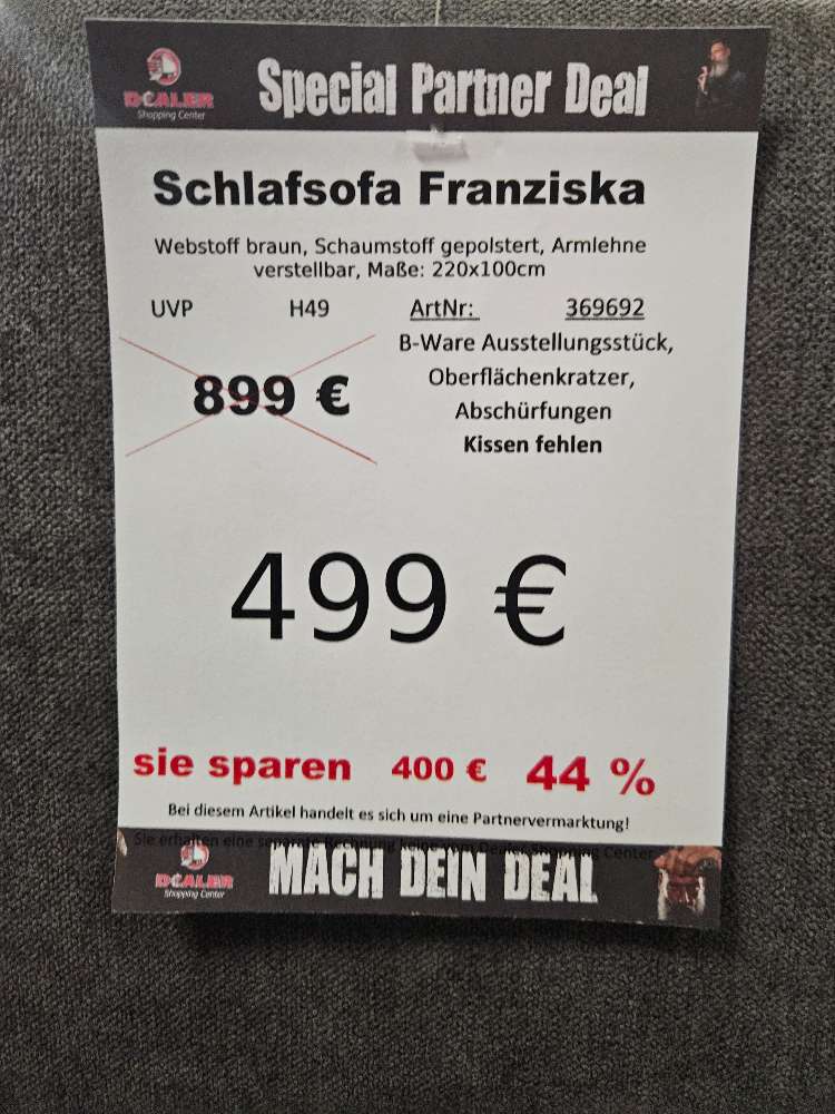 Schlafsofa Couch Franziska Webstoff Braun statt 899€