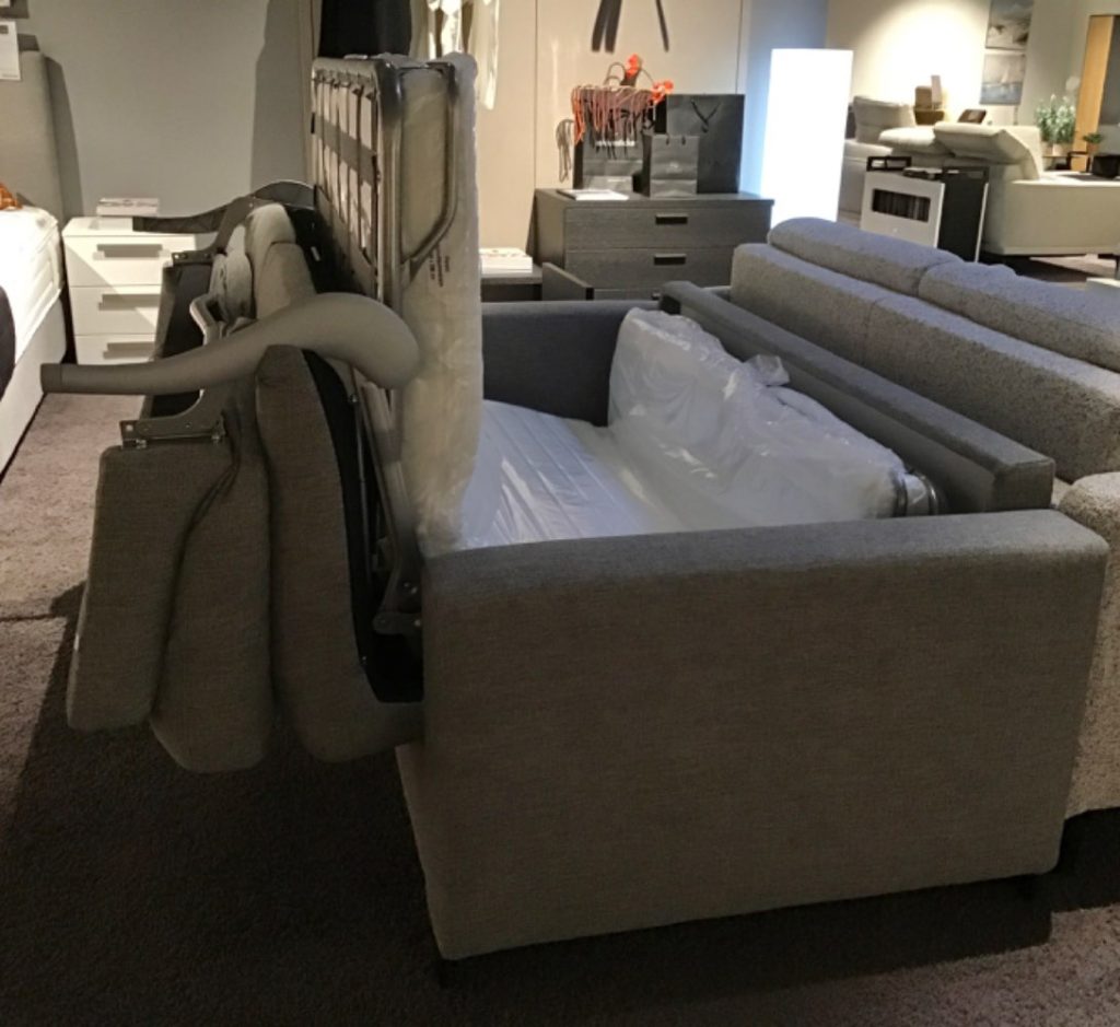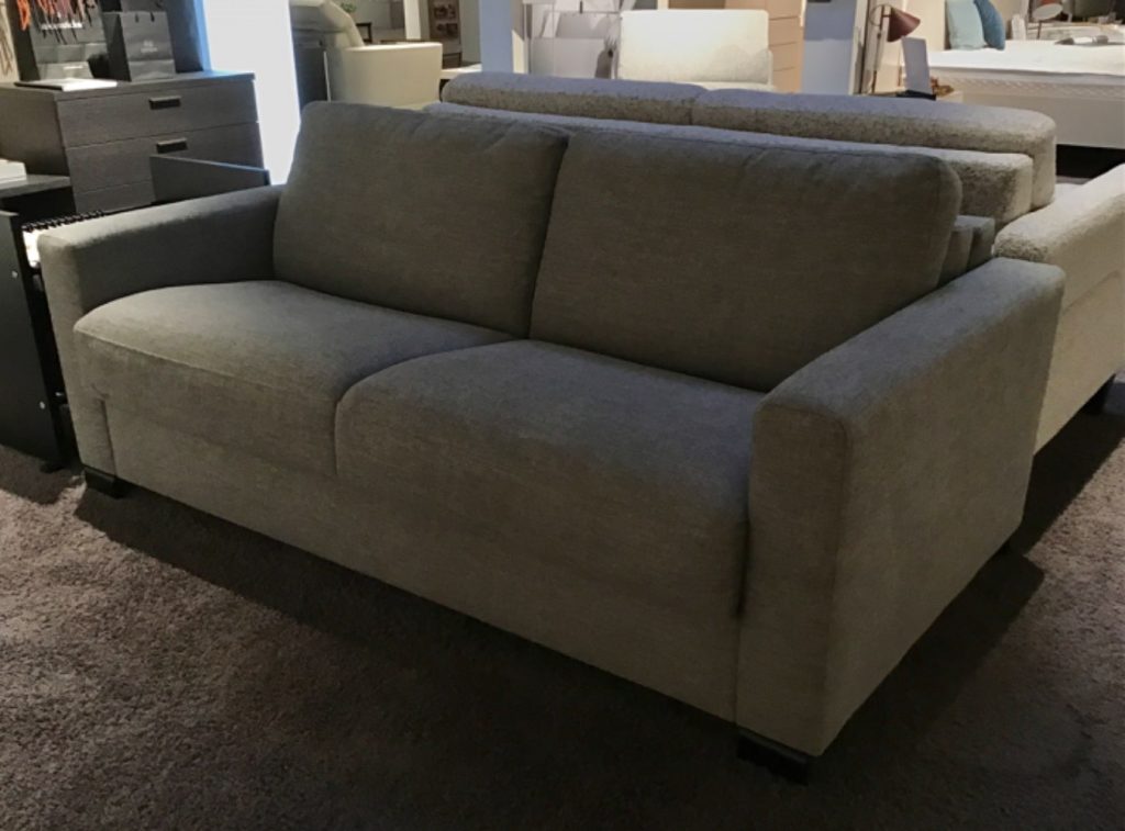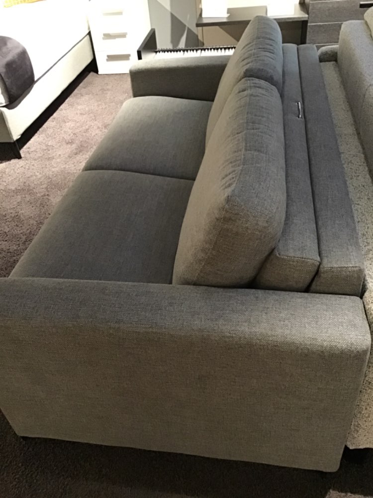 Das platzsparende Sofa lässt sich in paar Handgriffen zu einem Bett umwandeln. Die Sitzfläche des Sofas wird inklusive Rückenkissen umgeklappt und es kommt eine Matratze mit Liegefläche 140x208cm zum Vorschein. Der Stil des Sofas ist Zeitlos und passt sich zu jeder Einrichtungsstil an.
