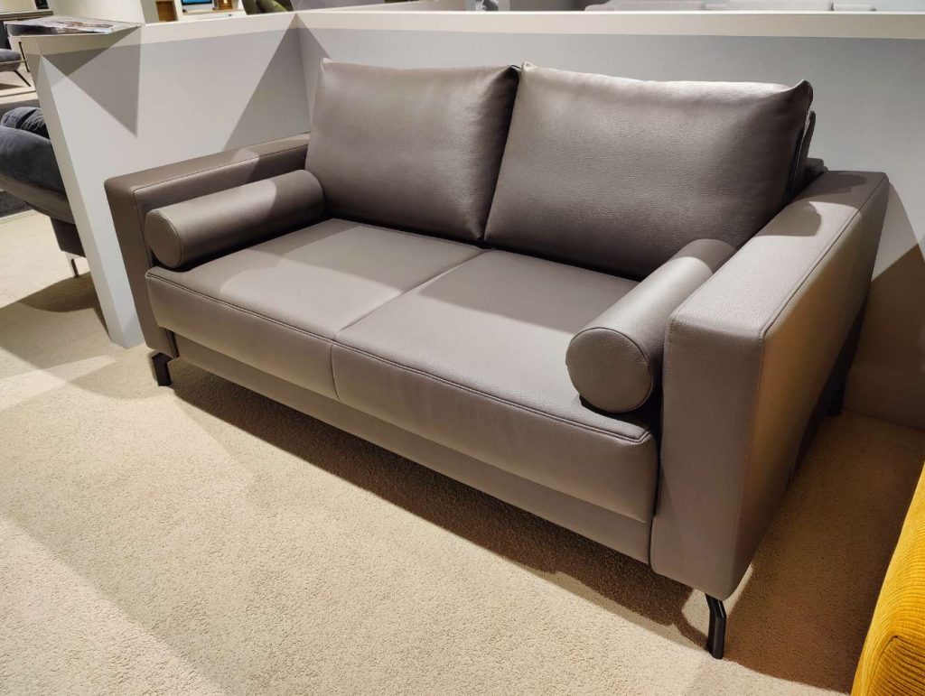 Bemerkung Das Schlafsofa Florida von NEHL kombiniert stilvolles Design mit herausragender Funktionalität. In einer eleganten grauen Farbgebung präsentiert sich dieses Möbelstück in einer ansprechenden Microfaser in Lederoptik, die nicht nur äußerst strapazierfähig, sondern auch pflegeleicht ist. Die Oberfläche fühlt sich angenehm an und bietet gleichzeitig Langlebigkeit, ideal für den täglichen Gebrauch. Das Sofa besticht durch seine kompakte Größe von 175 x 90 x 103 cm, während es sich mit einem einfachen Handgriff in eine großzügige Liegefläche von etwa 140 x 200 cm verwandeln lässt. Dank des hochwertigen Kaltschaums und der Möglichkeit zum Relaxen oder Schlafen auf Komforthöhe garantiert das Modell Florida höchsten Komfort. Unterstützt durch schicke, schwarze Metallfüße fügt sich das Sofa harmonisch in moderne Wohnlandschaften ein. Zusätzlich bietet es durch die zwei enthaltenen Rückenkissen und Rollen nicht nur zusätzlichen Komfort, sondern auch Funktionalität. Als Ausstellungsware bietet es die Möglichkeit, hohe Qualität und Design zu einem attraktiven Preis zu erwerben.
