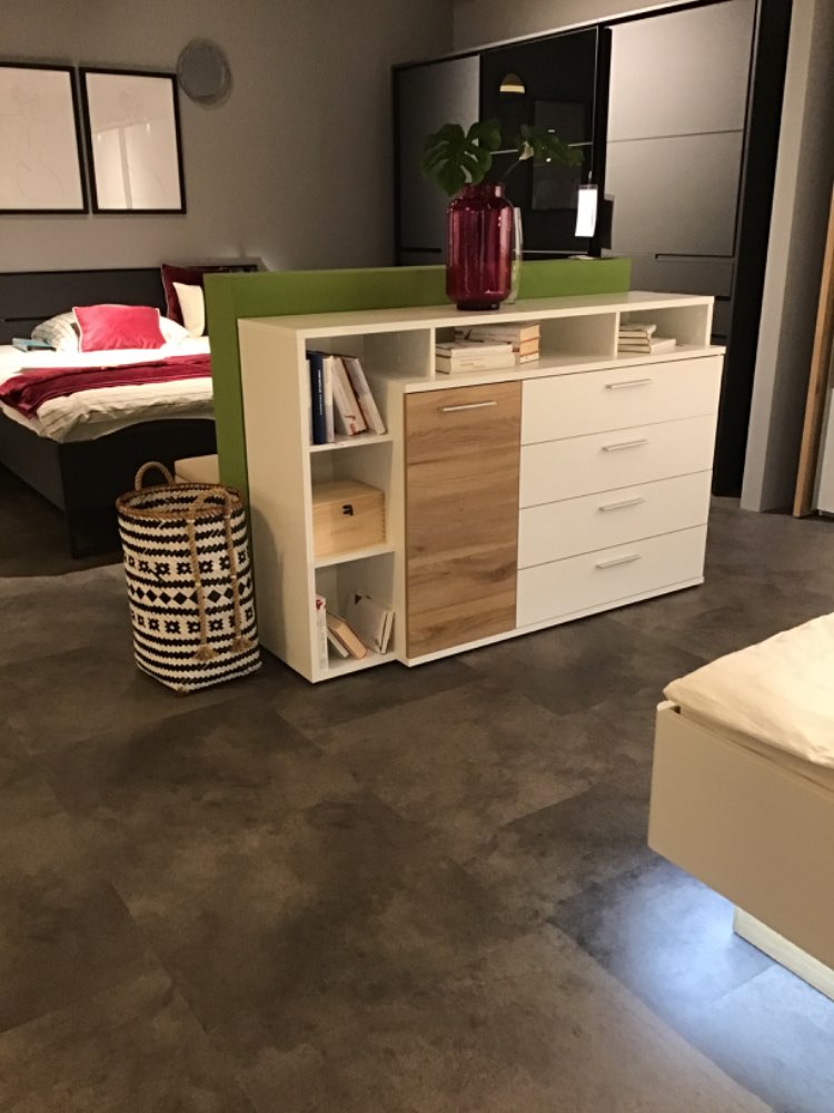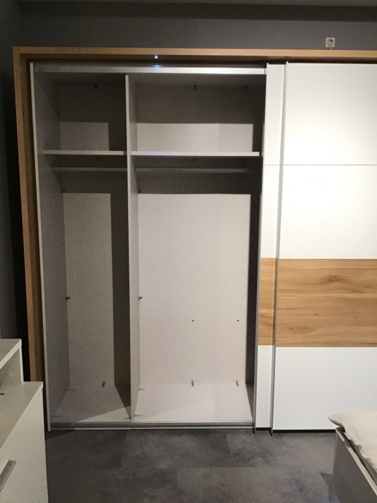 komp. Schwebetürenschrank,Bettanlage und Kommode ohne Rahmen und Matratzen und Deko