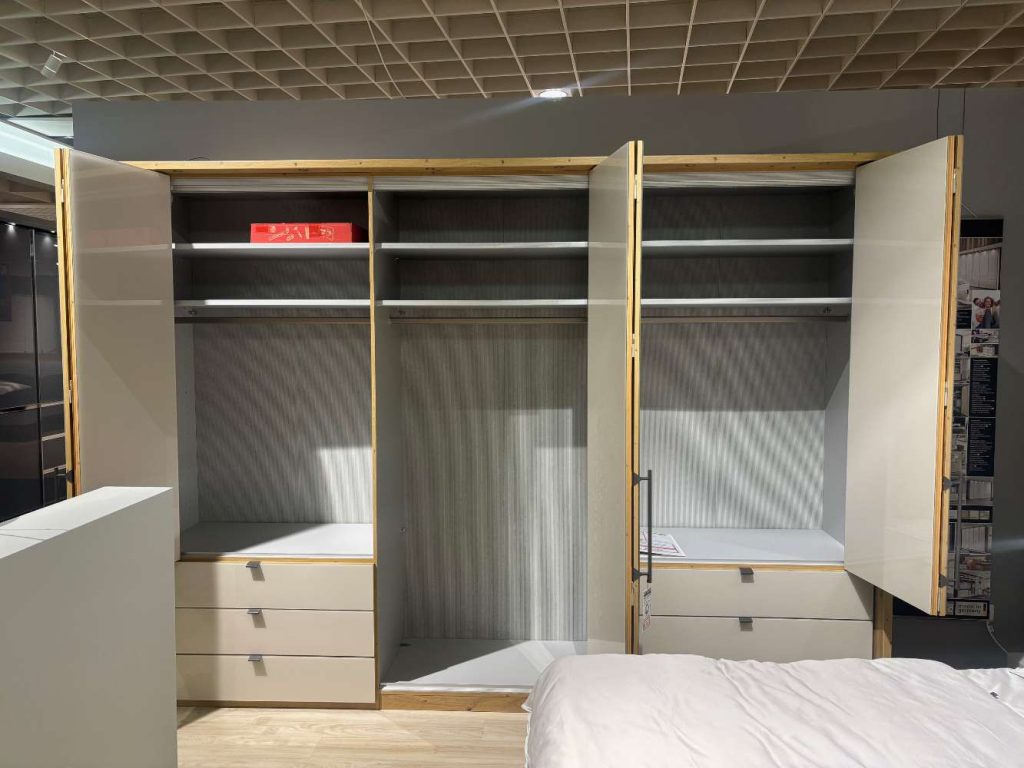 Kleiderschrank BHT ca.: 306x216x58 cm, Bettanlage BT ca.: 189x218 cm, Kopfteilhöhe ca.: 97 cm, Kommode BHT ca.: 149x82x42