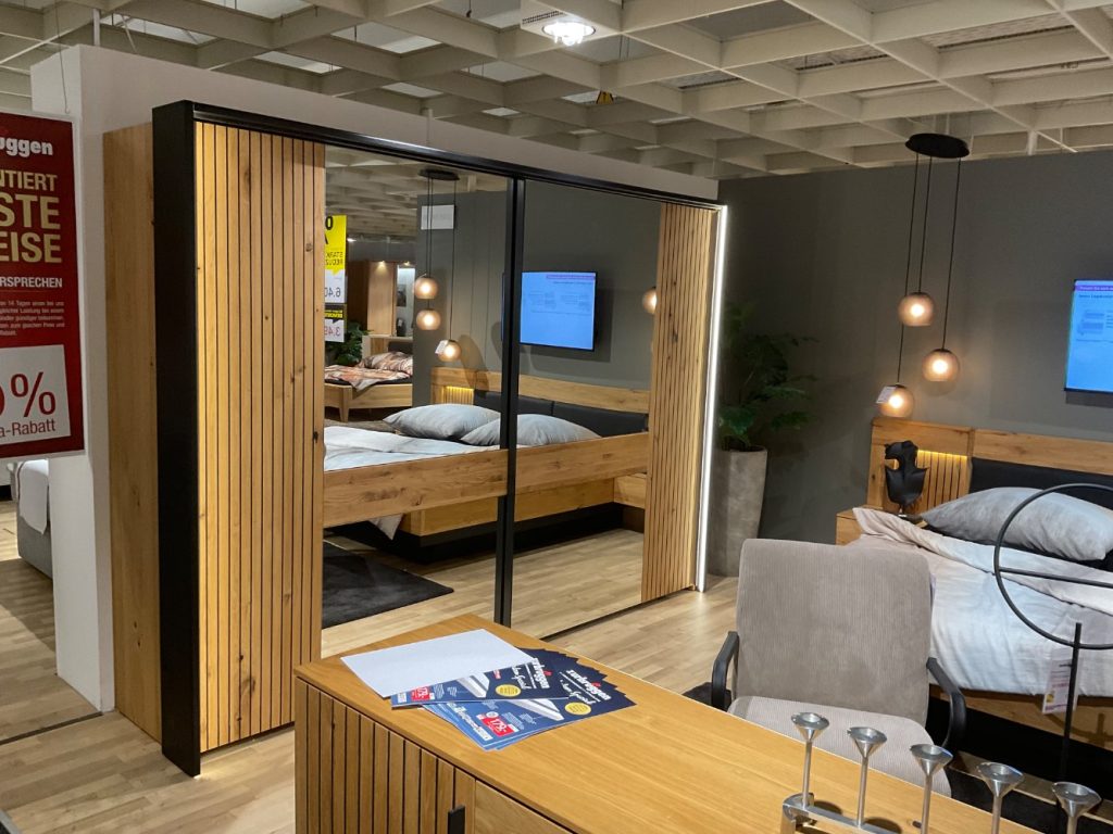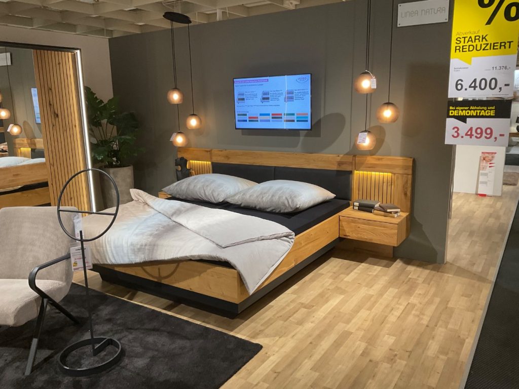 Bemerkung Das Modell Rubea in Eiche teilmassiv geölt bietet eine beeindruckende Kombination aus zeitloser Eleganz und praktischer Funktionalität. Diese Ausstellungsware besticht durch ihre großzügigen Maße von etwa 305 cm Breite, 218 cm Höhe und 61 cm Tiefe und wird so zum Hingucker in jedem Raum. Der warme Ton des geölten Eichenholzes verleiht dem Möbelstück eine natürliche und einladende Ausstrahlung, die sich nahtlos in verschiedenste Einrichtungsstile integrieren lässt. Besonders hervorzuheben sind die durchdachten Extras, die das Modell Rubea bietet. Der Passepartout-Rahmen mit integrierter Beleuchtung sorgt für eine stimmungsvolle Atmosphäre und setzt das Möbelstück effektvoll in Szene. Türdämpfer unterstützen eine geräuscharme und sanfte Handhabung, was den Komfort im Alltag zusätzlich erhöht. Praktische Bettschubkästen bieten zudem wertvollen Stauraum und tragen zur Ordnung und Struktur im Wohnbereich bei. Hergestellt von der Firma Telmex setzt dieses Möbelstück nicht nur optische Akzente, sondern überzeugt auch durch seine funktionalen Vorzüge und hochwertige Verarbeitung.