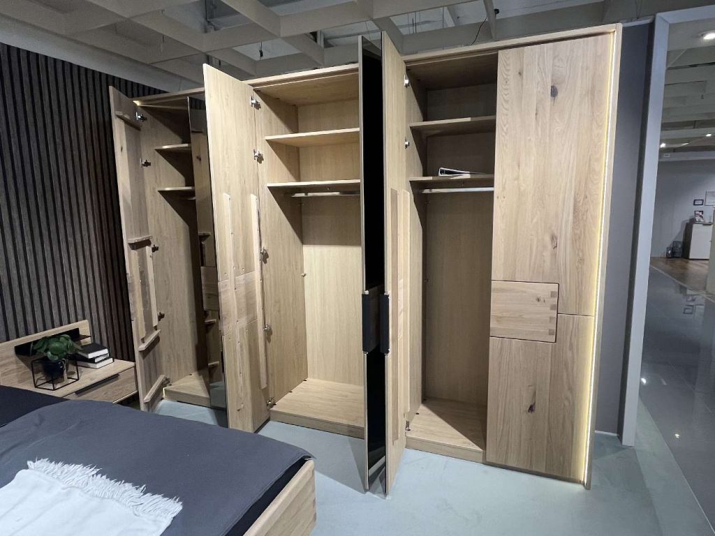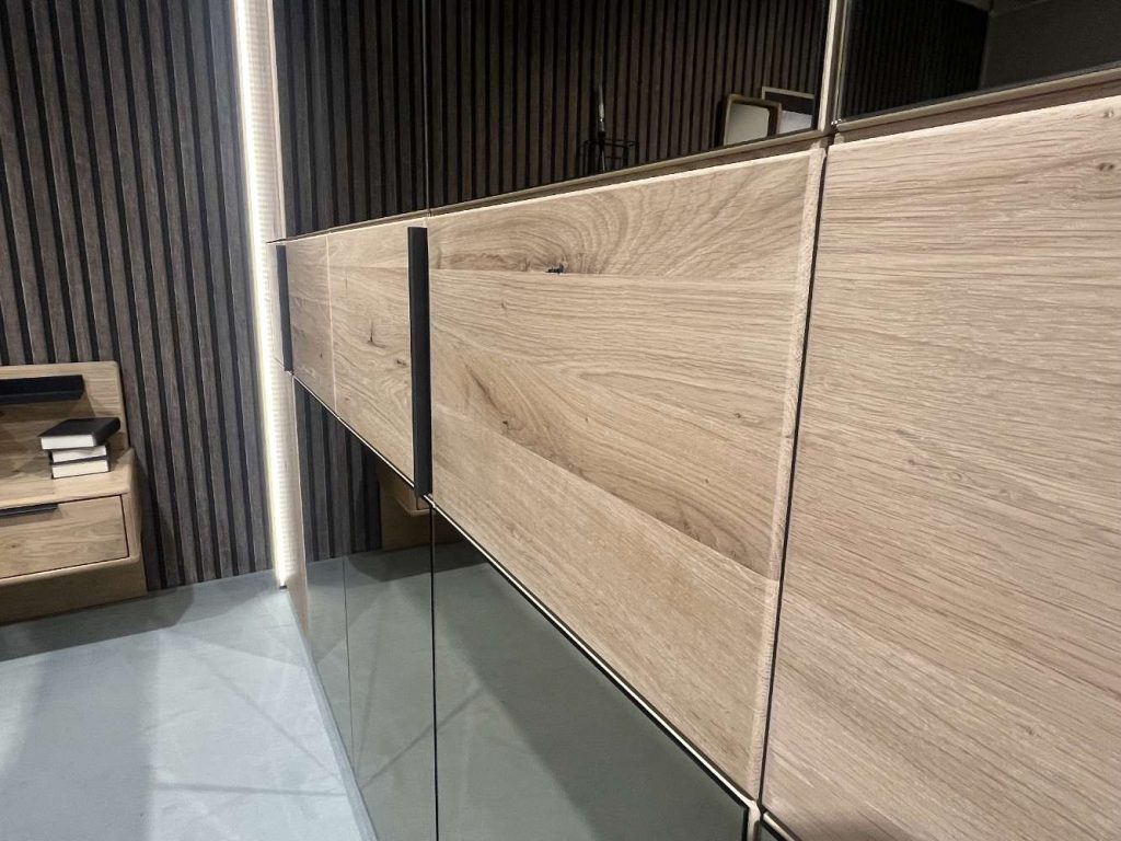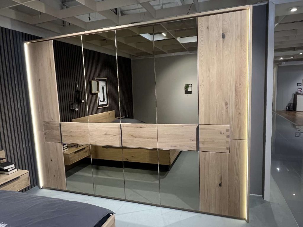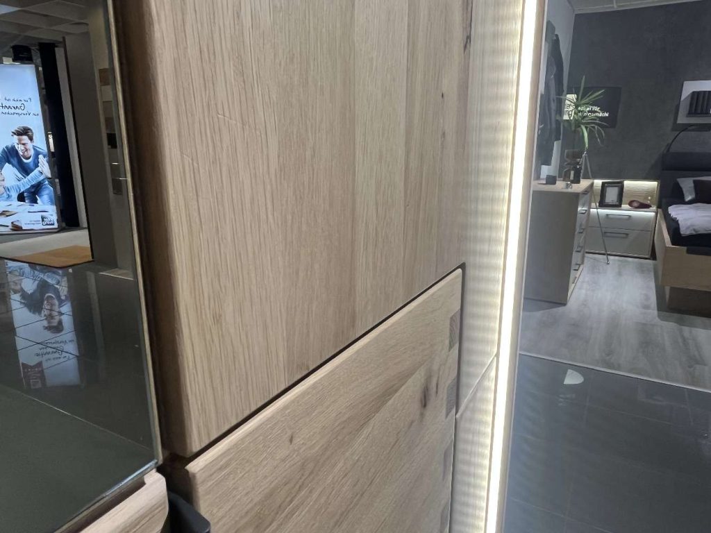 Bemerkung Natur trifft Moderne: Asteiche Bianco bringt warme Holztöne und sichtbare Ast-Strukturen, die deinem Raum Charakter geben. Kombiniert mit dämpfenden Türen, feiner Haptik und LEDs, wird dein Schlafzimmer zum Lieblingsplatz zum Entspannen und Staunen.