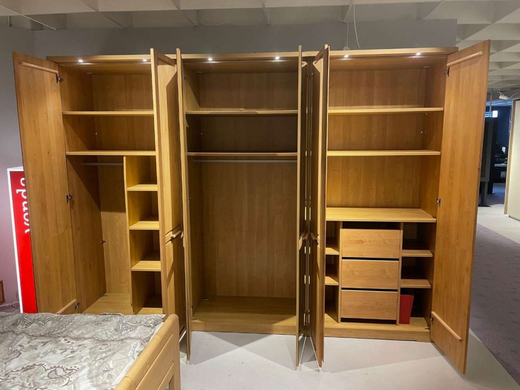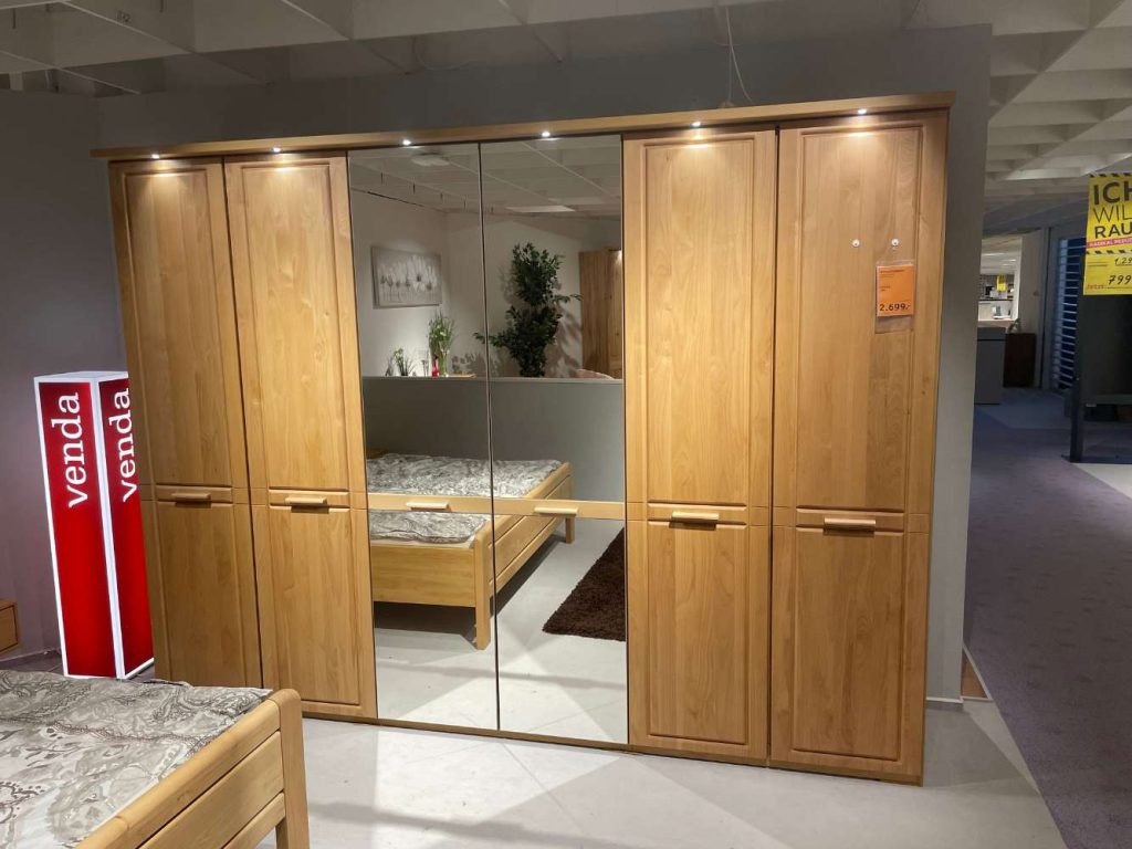 Schlafzimmer Bestehend aus: Bett: LF 180x200cm Außenmaß (B/H/T)189x93x210cm Nachtkästchen: (B/H/T)60x48x43cm Drehtürenschrank: (B/H/T) 300x216x58cm