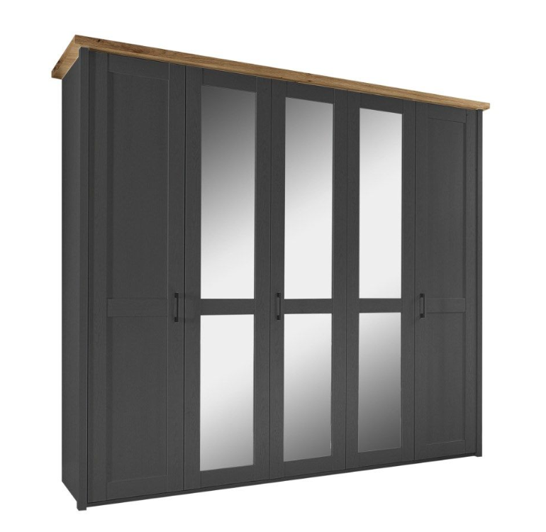 Schrank: ca. 241x212x62 cm, Bett: 180x200cm, Kommode: ca. 150x90x42 cm