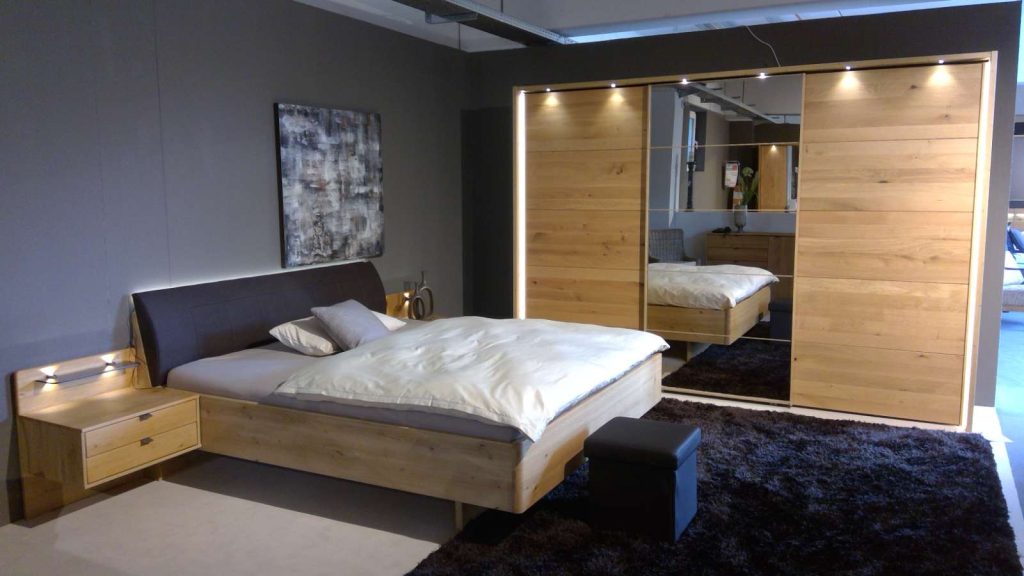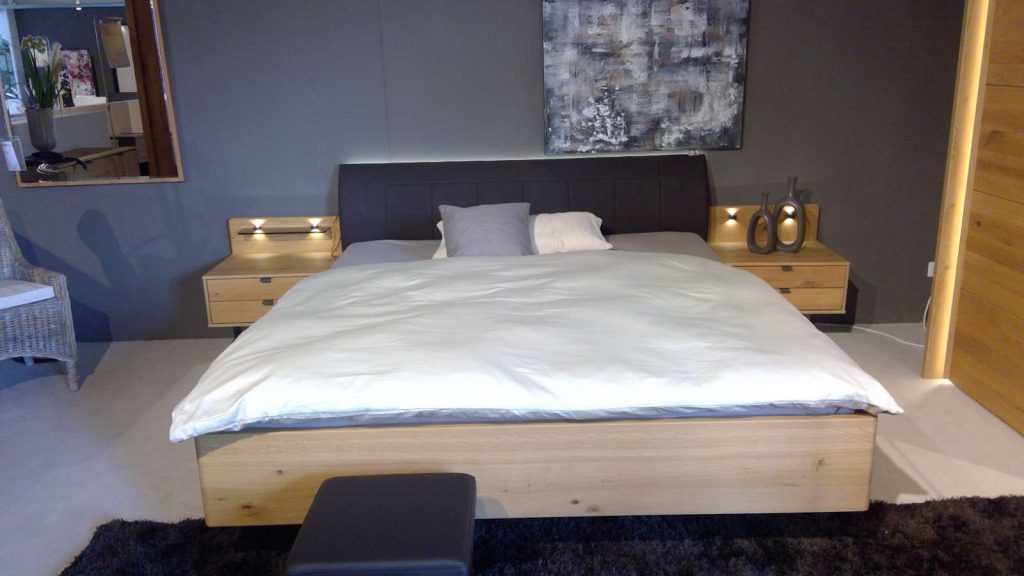 Bemerkung Das Cardiff Schlafzimmer-Set von WIEMANN vereint zeitlose Eleganz mit moderner Funktionalität. Die Kombination aus teilmassivem Bianco Eichenholz und naturgetreu nachempfundener Eichenoptik verleiht dieser Schlafzimmerausstattung eine warme, zeitlose Atmosphäre. Der großzügige Schwebetürenschrank mit einer Breite von 300 cm und einer imposanten Höhe von 217 cm bietet nicht nur reichlich Stauraum, sondern überzeugt zusätzlich durch eine integrierte Spiegeltür, die den Raum optisch vergrößert. Gedämpfte Außentüren, Mitteltüren und Kollisionsschutz sorgen für sanftes und nahezu lautloses Schließen. Das Herzstück des Sets ist das komfortable Bett mit den Maßen von 180x200 cm, das mit einer stilvollen LED-Ambientebeleuchtung am Kopfteil ausgestattet ist, was eine behagliche Stimmung schafft. Die schwebende Nachtkonsole von 60 cm Breite ergänzt das Set und verleiht dem Raum eine schicke, moderne Note. Die Kombikommode mit Maßen von 120x86x43 cm bietet zusätzlich Stauraum für ihre Wäsche. Ein integrierter Passepartout-Rahmen mit LED-Beleuchtung und Stollenbeleuchtung rundet das stimmige Gesamtbild ab. Diese Ausstellungsmöbel bieten nicht nur praktischen Nutzen, sondern sind auch ein optisches Highlight in jedem Schlafzimmer. Art. 98914 Dieser Artikel befindet sich in unserer Filiale Mayen. Wir sind für Anfragen Dienstags-Freitags von 9:30-18:30, Samstags bis 16 Uhr erreichbar! Um nachhaltig Energie einzusparen, verzichten wir seit dem vergangenen Jahr auf die Ladenöffnung am Green Monday und werden somit mit einer Vielzahl an weiteren Maßnahmen unserer ökologischen Verantwortung gerecht. Bitte berücksichtigen Sie diebei Ihren Anfragen um lange Antwortzeiten zu vermeiden. Besten Dank für Ihr Verständnis!