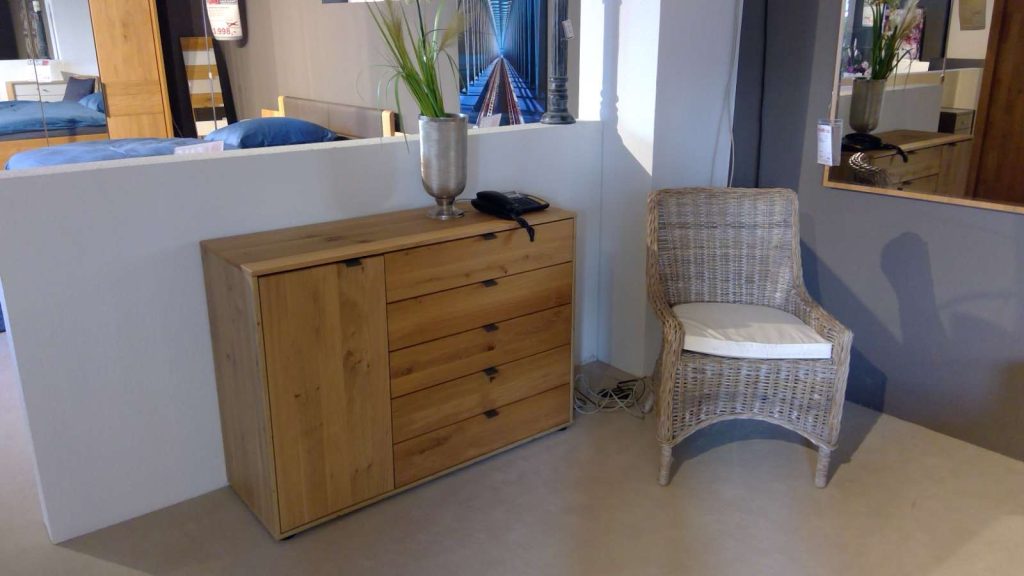 Schlafzimmer Eiche teilmassiv, Bettanlage, Schweber, Kommode