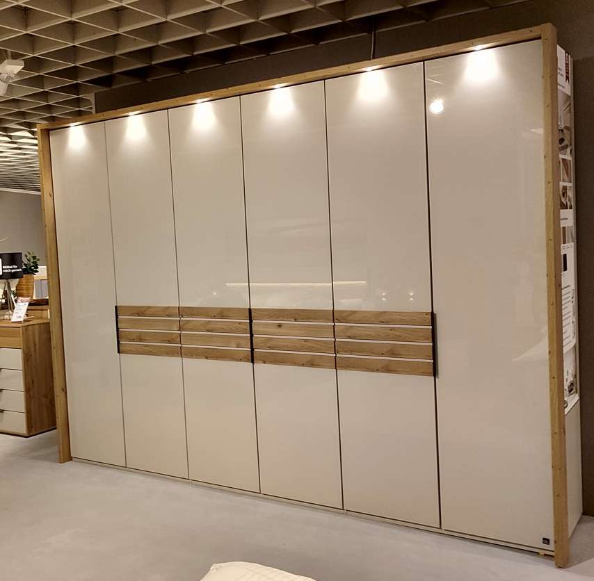 Schrank: BHT ca. 300 x 216 x 58 cm; Bett: Liegefläche ca. 180 x 200 cm; Kommode: BHT ca. 120 x 86 x 43 cm