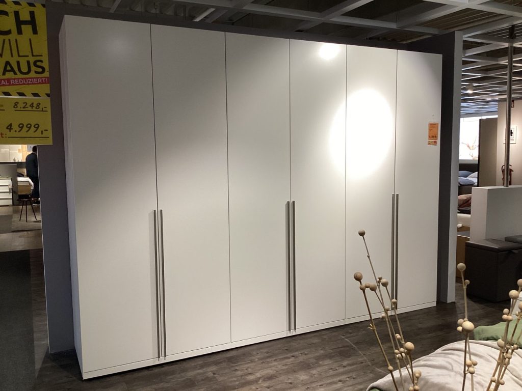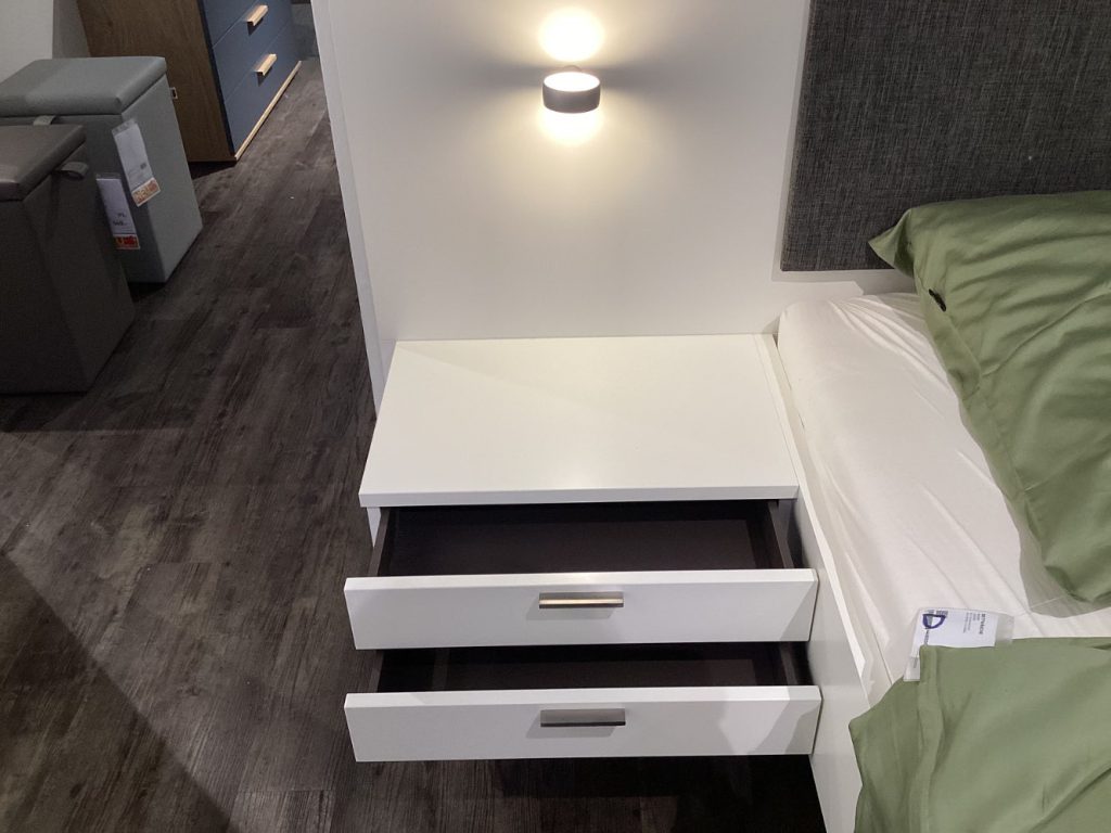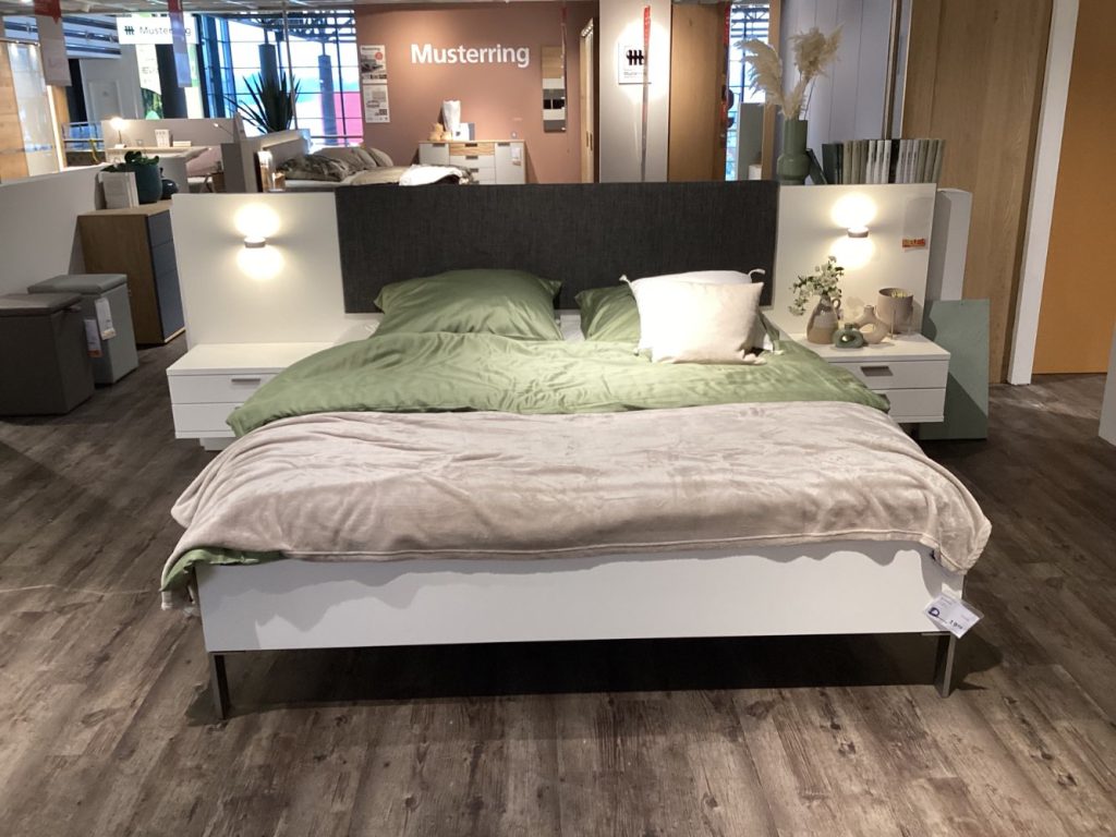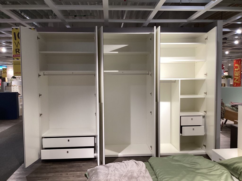 BemerkungDas Inferno-S Schlafzimmer-Set besticht durch sein elegantes und modernes Design in edlem Lack Weiß. Dieses attraktive Ausstellungsstück vereint Funktionalität mit Stil und bietet eine harmonische Ergänzung für jedes Schlafzimmer. Der großzügige Drehtüren-Schrank mit den Maßen 315x236x62 cm (B/H/T) bietet reichlich Stauraum und eine durchdachte Inneneinteilung, die das Verstauen und Organisieren Ihrer Kleidung zum Kinderspiel macht. Zudem fügt sich die Bettanlage mit einer komfortablen Liegefläche von 180x200 cm perfekt in das Gesamtbild ein und bietet erholsamen Schlafkomfort. Die zwei Nachtschränke, die im Lieferumfang inbegriffen sind, vervollständigen das Set und bieten zusätzliche Ablageflächen für Ihre persönlichen Gegenstände. Dieses stilvolle Ensemble schafft nicht nur Ordnung und Funktionalität, sondern verleiht Ihrem Raum ein Gefühl von Ruhe und Eleganz.