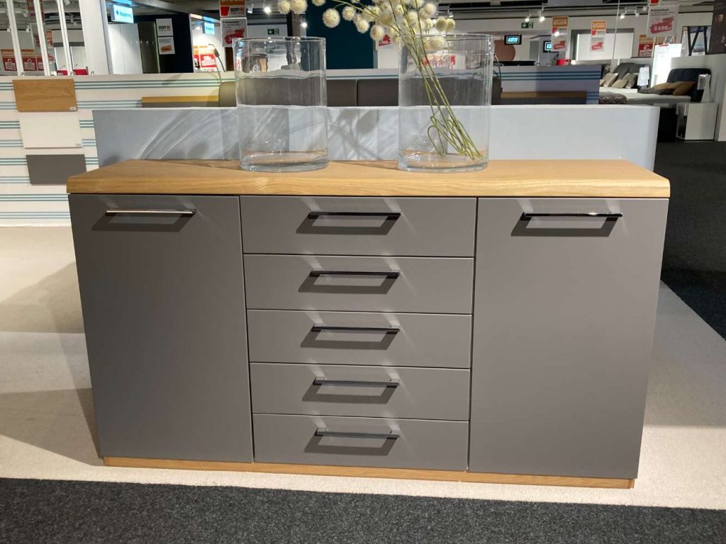 Korpus Wildeiche Furnier Absetzungen Lack Manhatten Korpus innen Lack weiß