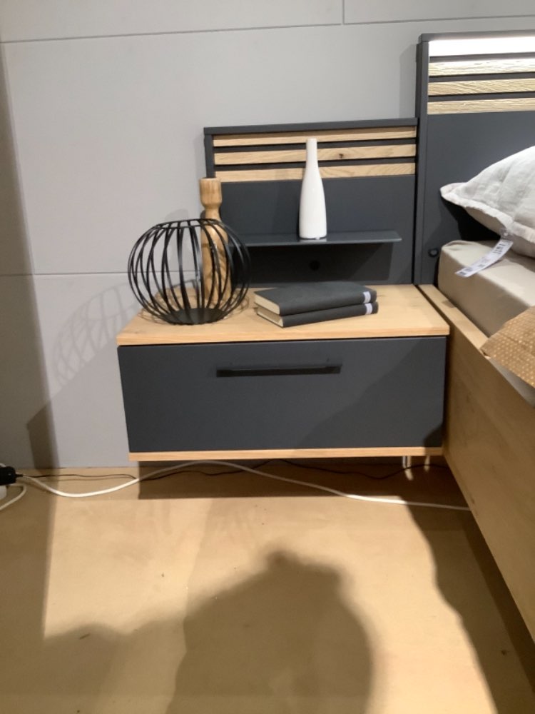 BemerkungInkl. Schwebetürenschrank mit Bauchbinde Lamelle ca. 270x230x68 cm, Bettgestell ca. 180x200 cm Lf und Nachtkonsole hängend ca. 60x25x46 cm