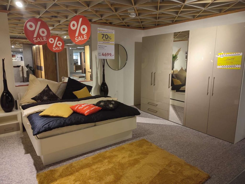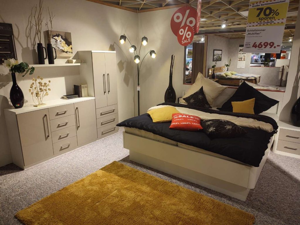 Kleiderschrank 274x225x60cm, Bettanlage 180x200cm, Kommode 59x167x38cm, Kommode 133x86x38cm, Wandregalboden 100x3x22cm