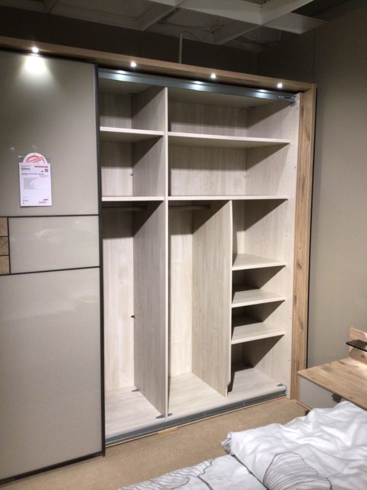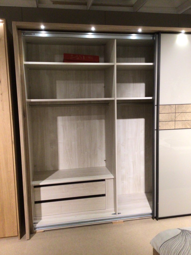 Schrank: B/H/T in cm ca. 300x217x67; Bett Liegefläche in cm ca. 180x200