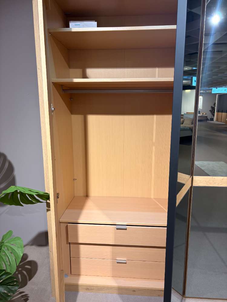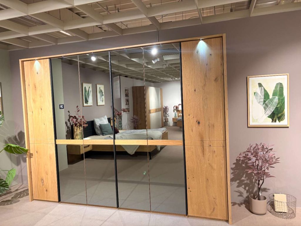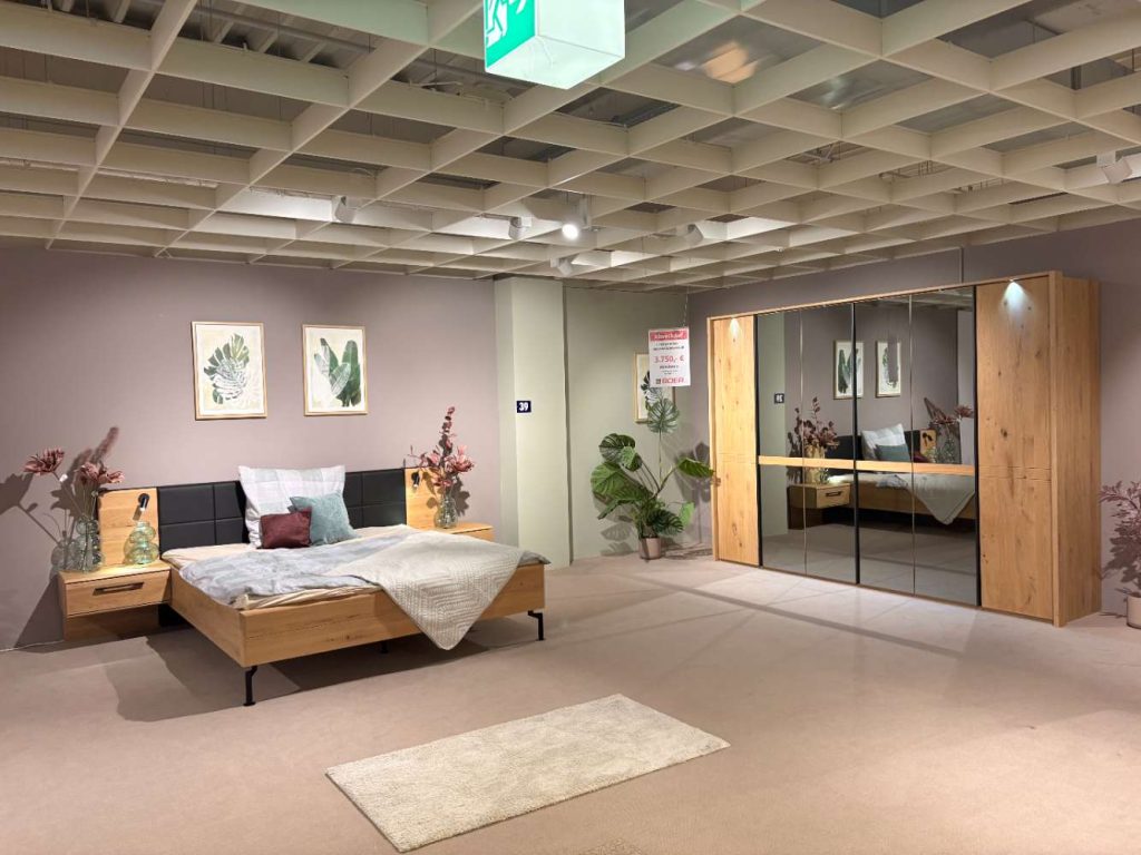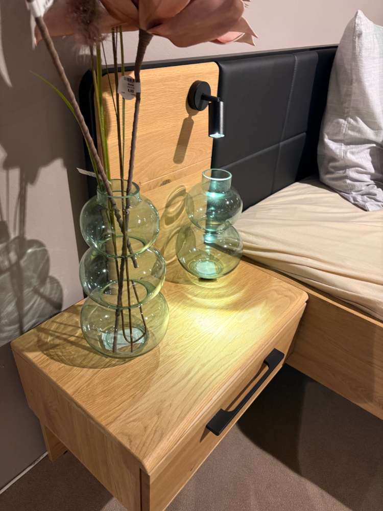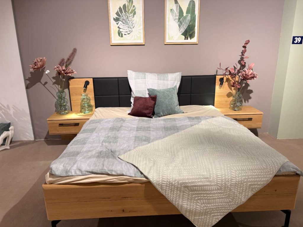 Wildeiche natur teilmassiv Absetzung Grauspiegel Kopfteil Lederoptik Schwarz mit Polstereinlage Rahmen+Füße Schwarz