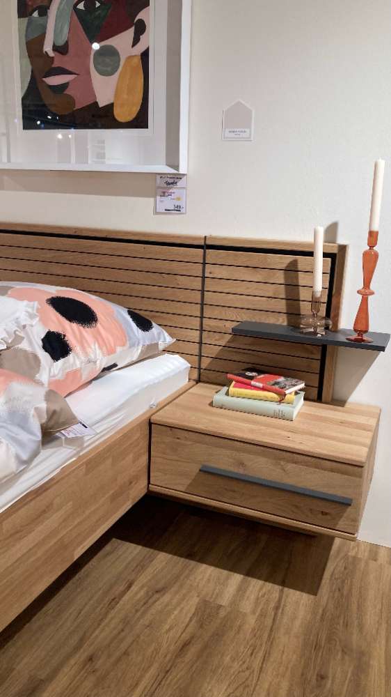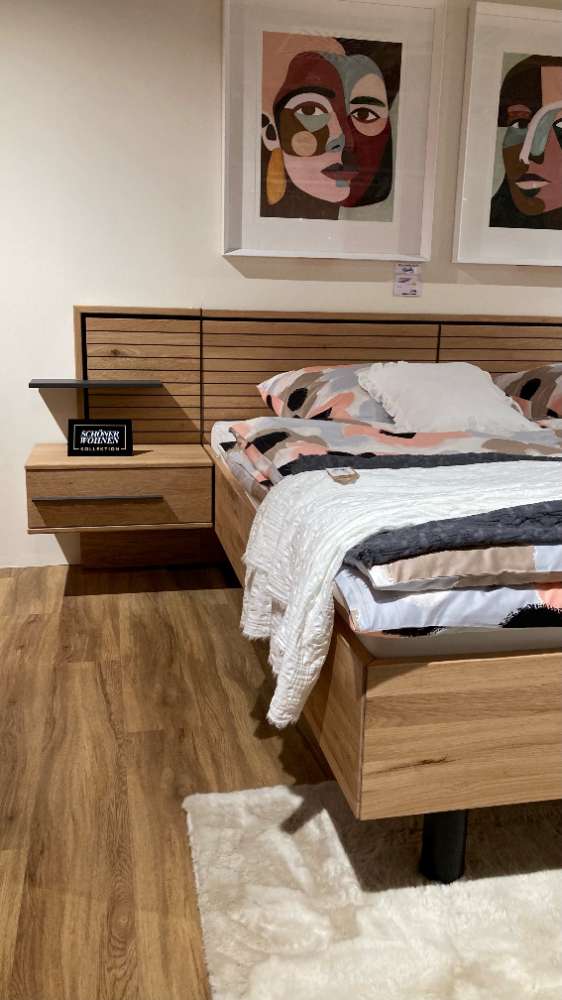 beinhaltet: Drehtürenschrank inkl. Passepartoutrahmen und Beleuchtung, Bett inkl. Nachttische mit beleuchtung