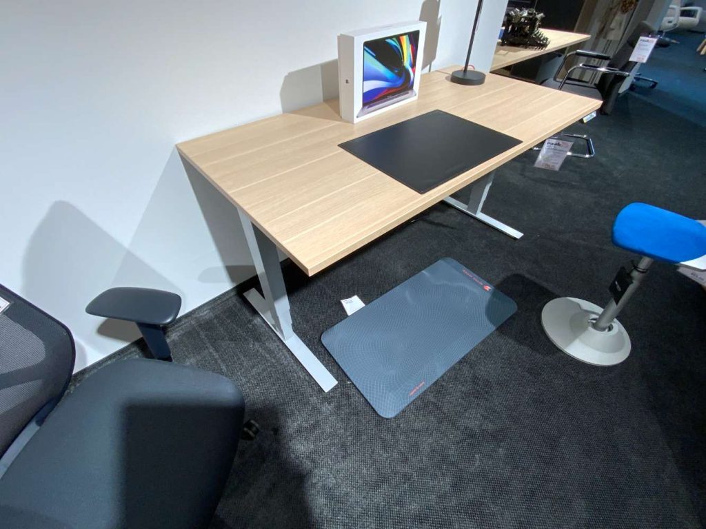 Schreibplatte Nr. 54 Camara Nb. Nr. 974 Rechteckplatte 80er Tiefe u. elektr. Höhenverstell. mit Memoryfunktion Maße: B. 160, H. 64-128, T. 80 cm mit T-Fuß Multi Alusilber