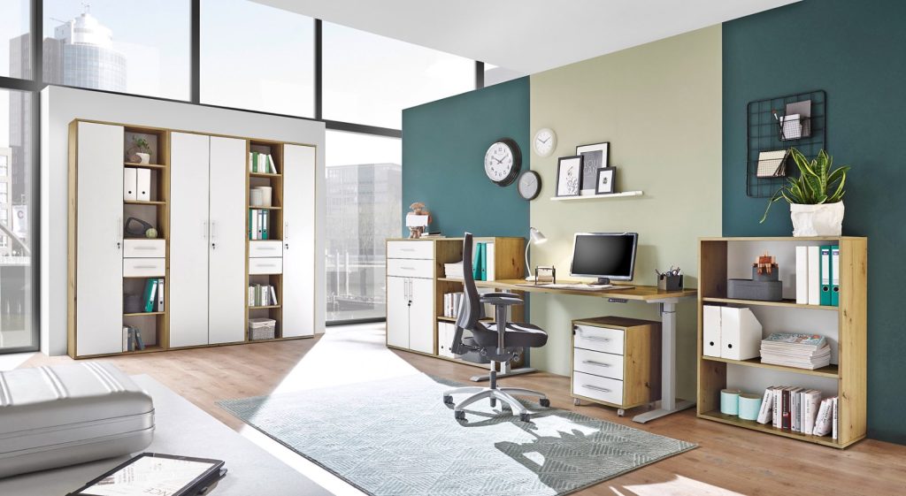 Büroprogramm vito® Korpus in Artisan Eiche, Front in weiß, Schreibtisch höhenverstellbar, B/H/T ca. 160x72x120x77 cm, Gestell in Silber. Artikelnummer: 13140260-00 Hauspreis: 739 € | Angebotspreis: 499 € Schrank B/H/T ca. 80x216x35 cm, 5 offene Fächer, 2 Schubladen und 1 Tür. Artikelnummer: 13140260-01 Hauspreis: 443 € | Angebotspreis: 299 € Schrank B/H/T ca. 80x216x35 cm, 2 Türen. Artikelnummer: 13140260-02 Hauspreis: 369 € | Angebotspreis: 249 € Regal B/H/T ca. 80x111x35 cm, 3 offene Fächer. Artikelnummer: 13140260-03 Hauspreis: 147 € | Angebotspreis: 99 € Schrank B/H/T ca. 80x111x35 cm, 2 Türen und 2 Schubkästen. Artikelnummer: 13140260-05 Hauspreis: 295 € | Angebotspreis: 199 € Rollcontainer B/H/T ca. 43x56x42 cm. Artikelnummer: 13140260-06 Hauspreis: 191 € | Angebotspreis: 129 €