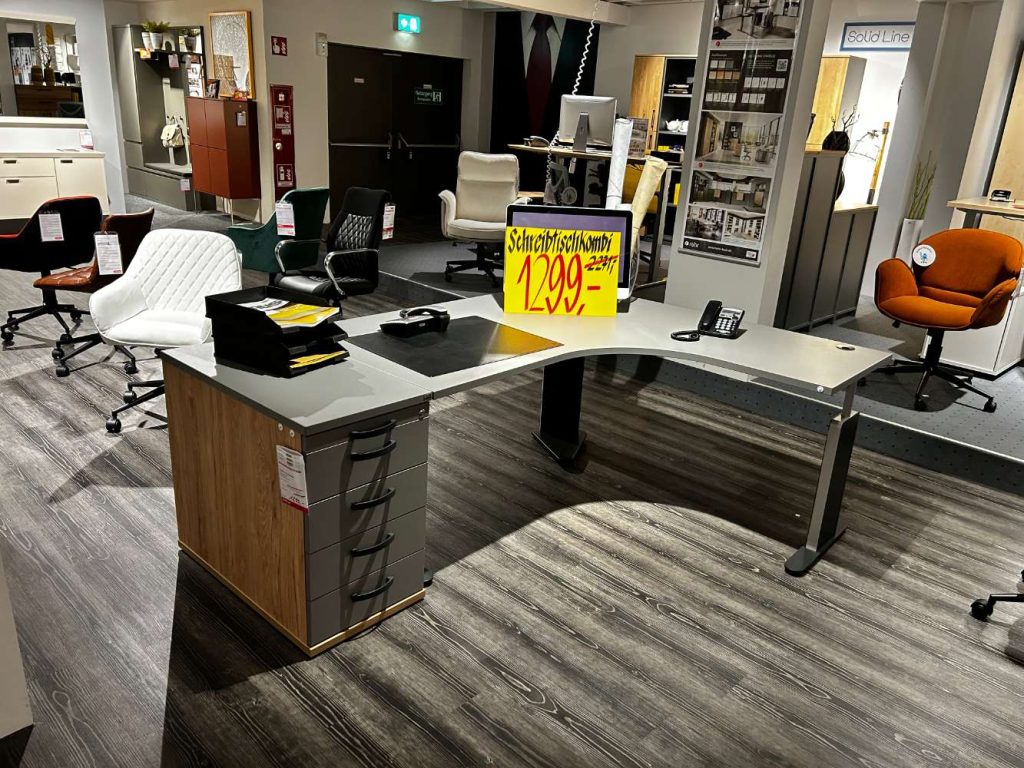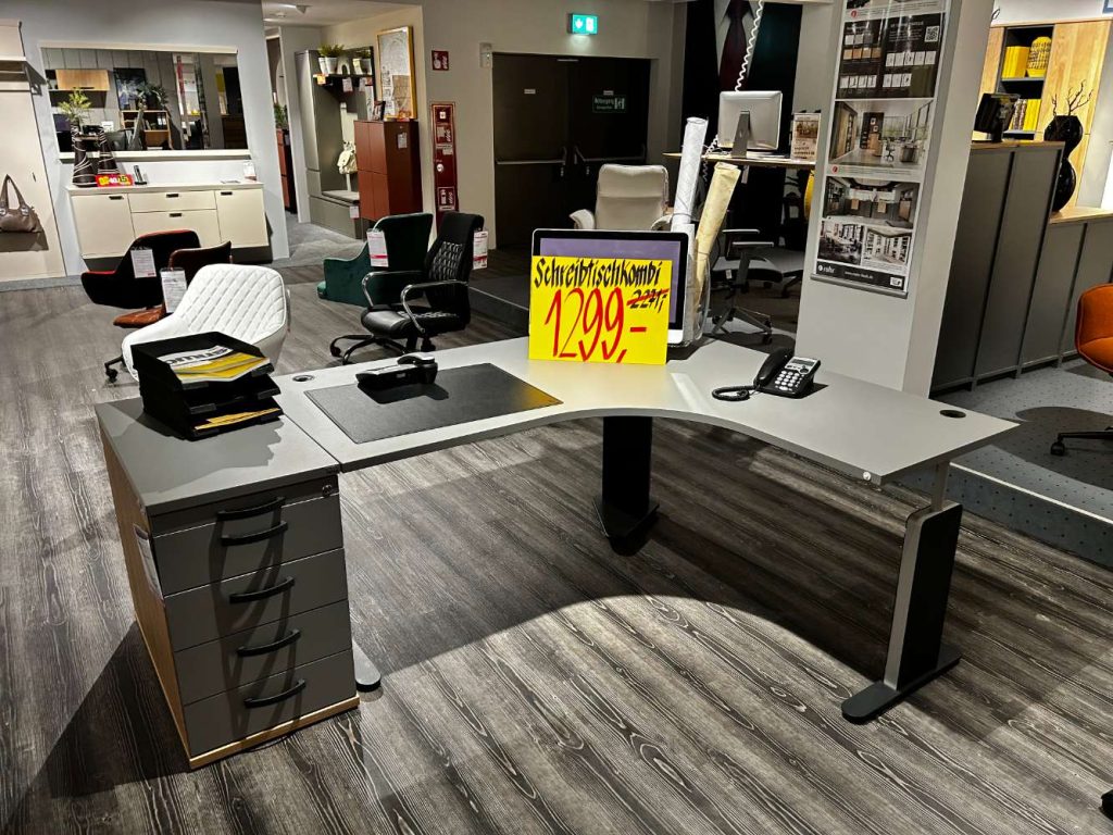 Tisch: BHT ca. 160 x 68 x 160 cm / Anstellcontainer: BHT ca. 43 x 72 x 80 cm