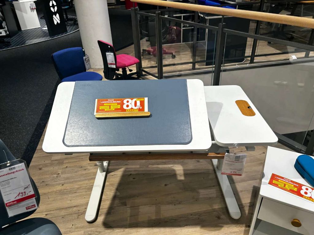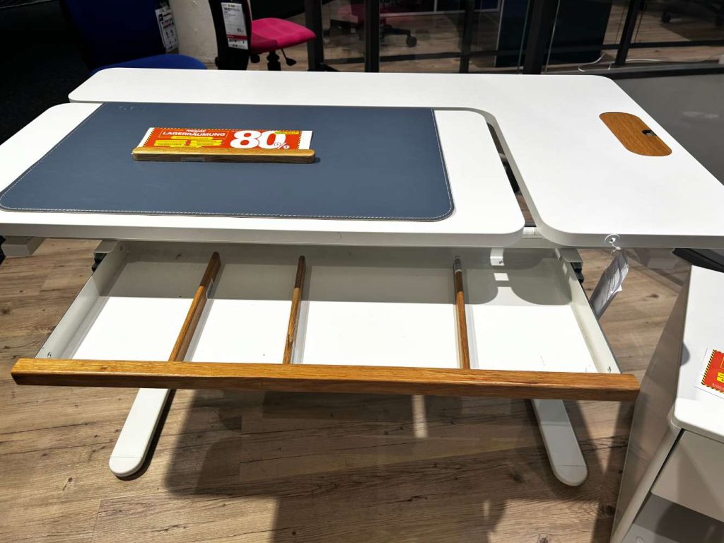 - Schreibtisch mit neigungsverstellbarer linker Platte für Rechtshänder