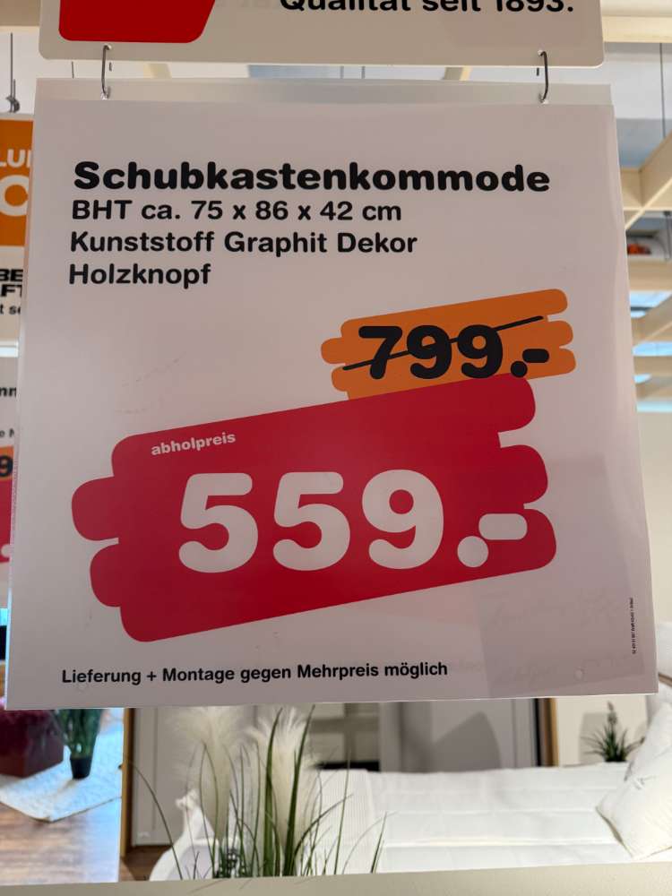 BemerkungDie Kommode Aalborg von WIEMANN präsentiert sich in einem eleganten Graphit-Finish und verleiht jedem Raum eine moderne und stilvolle Note. Als Ausstellungsstück bietet sie nicht nur Funktionalität, sondern auch ein besonderes Augenmerk auf Design und Detailverliebtheit. Mit den Maßen von circa 75 cm Breite, 86 cm Höhe und 42 cm Tiefe eignet sich diese Kommode perfekt für kleinere Räume oder als dezentes Staumöbelstück in größeren Umgebungen.