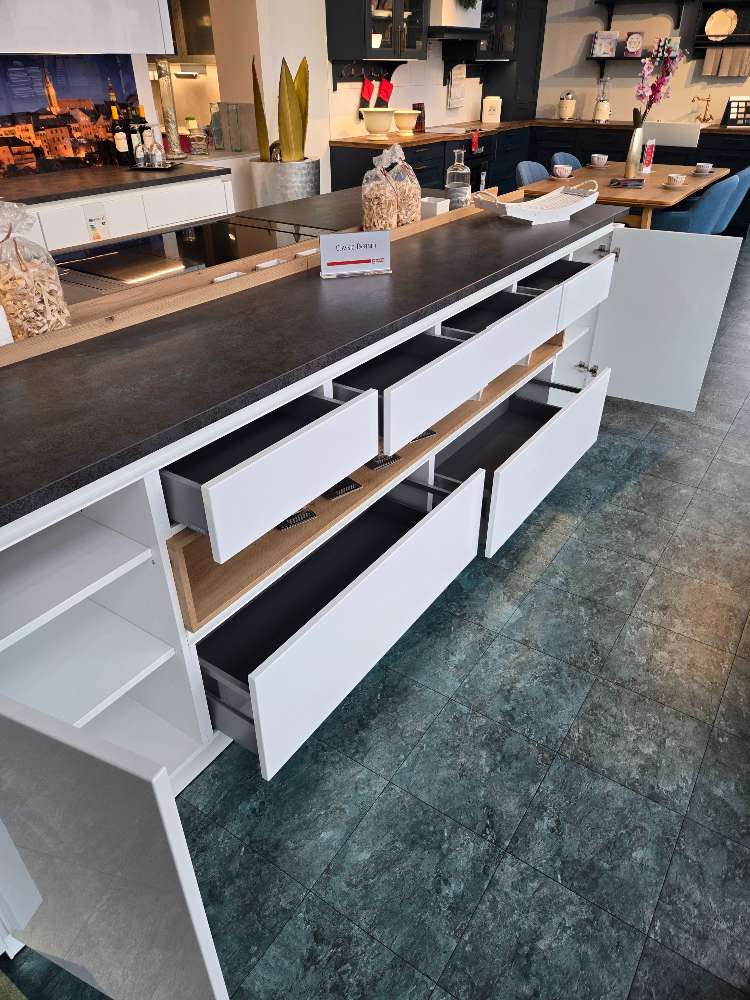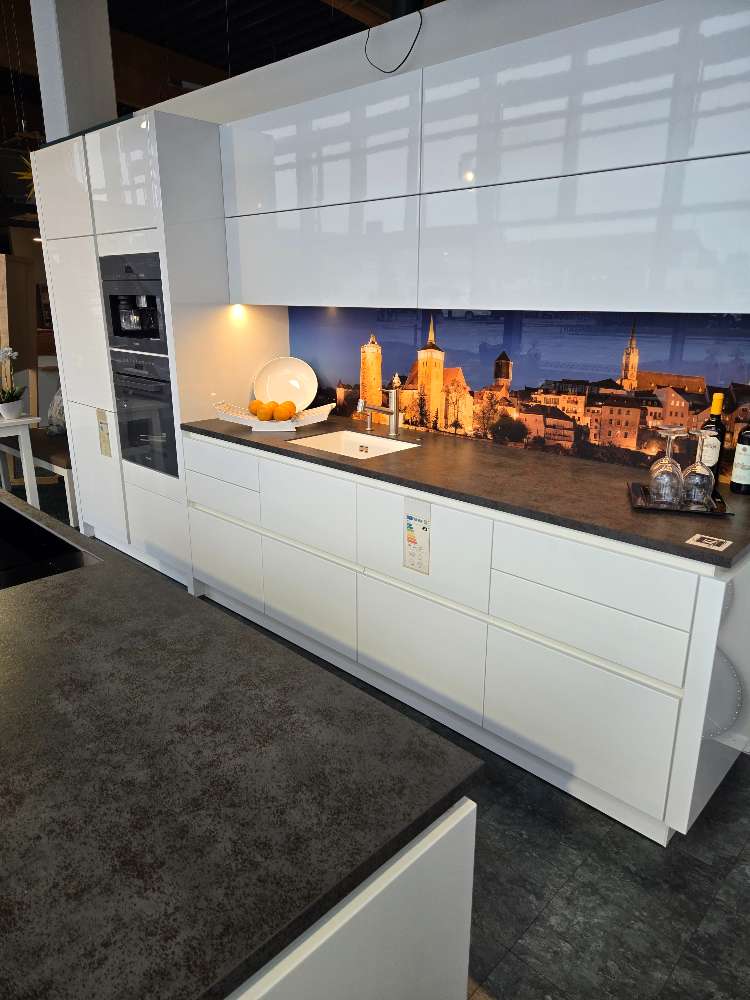 Schüller Gala Ausstellungsküche Kristallweiß Hochglanz Inselküche