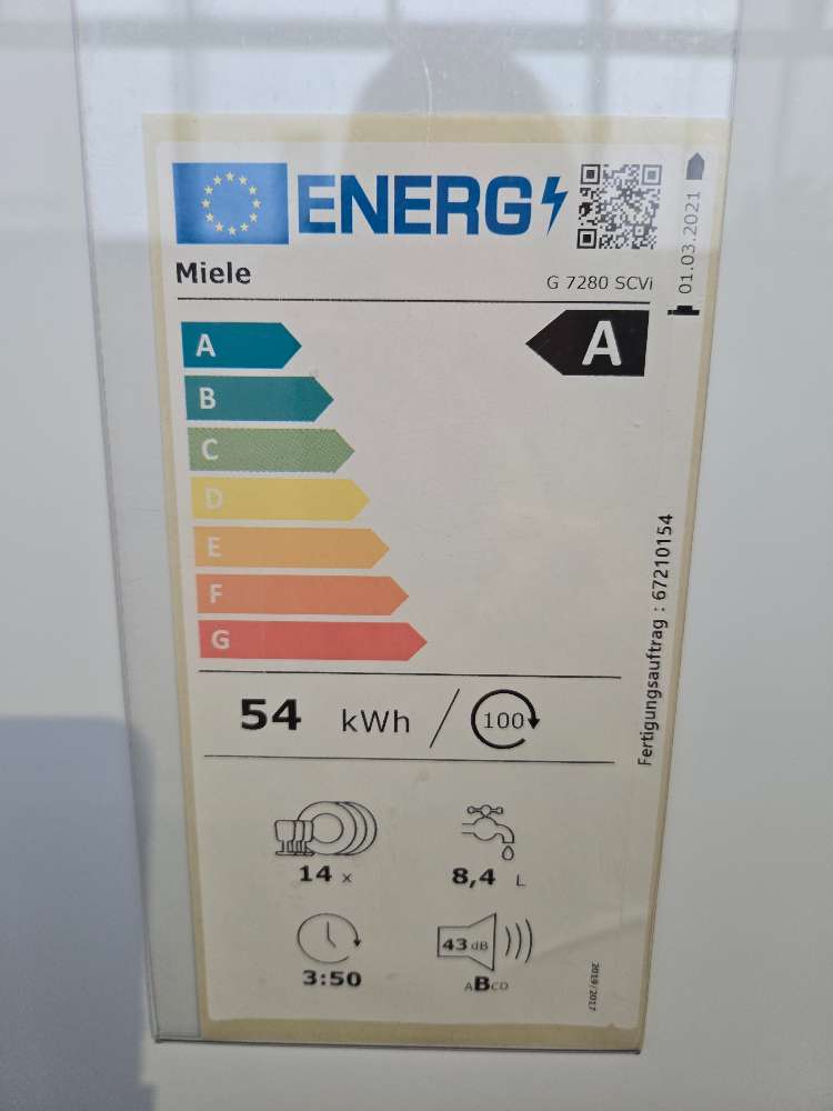Energieklasse: A (Spektrum: Von A+++ bis D) Energylabel A Spektrum: Von A+++ bis D